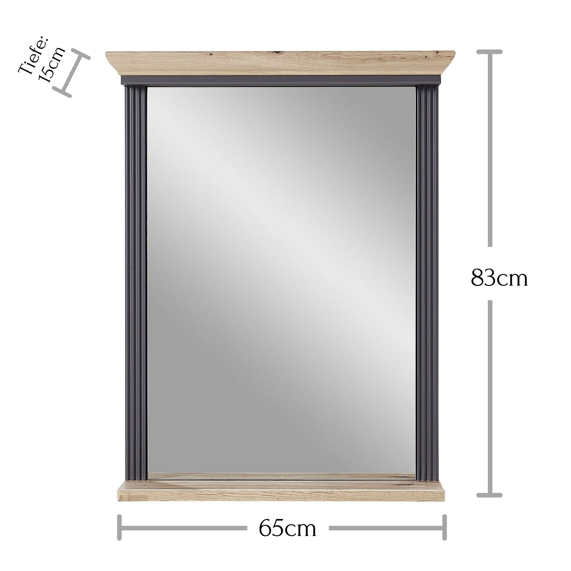 Oglinda JASMIN, gri grafit/stejar artisan, PAL, 65x15x83 cm