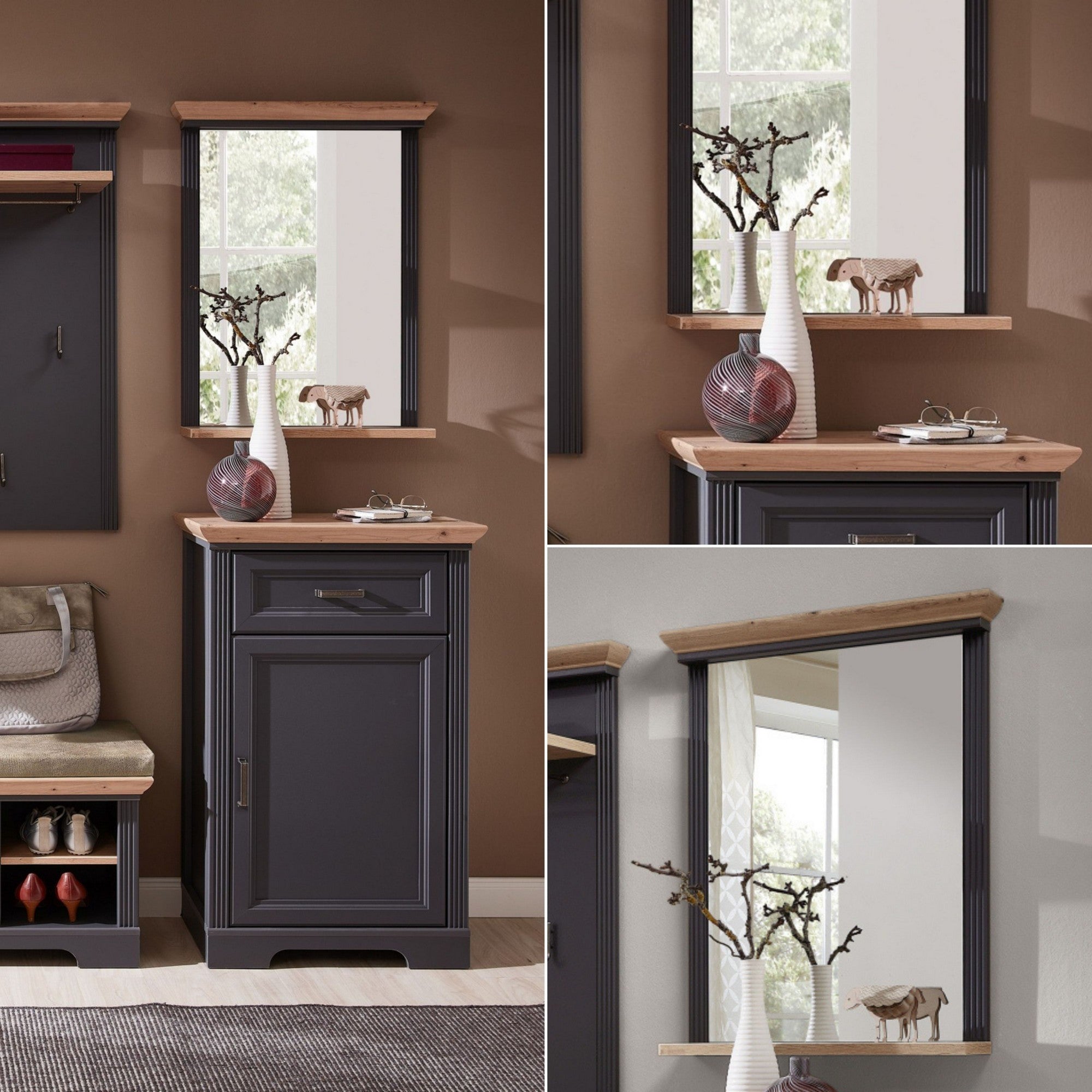 OGLINDA JASMIN, GRI GRAFIT/STEJAR ARTISAN, PAL, 65X15X83 CM