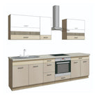 Set bucatarie PREMIO C, carcasa stejar sonoma/fronturi cappuccino si alb lucios, PAL, 260 cm, cu blatul trawertyn si plintele incluse