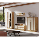 Set living KEKS A, stejar/casmir, PAL/sticla, cu iluminare LED, 308 cm