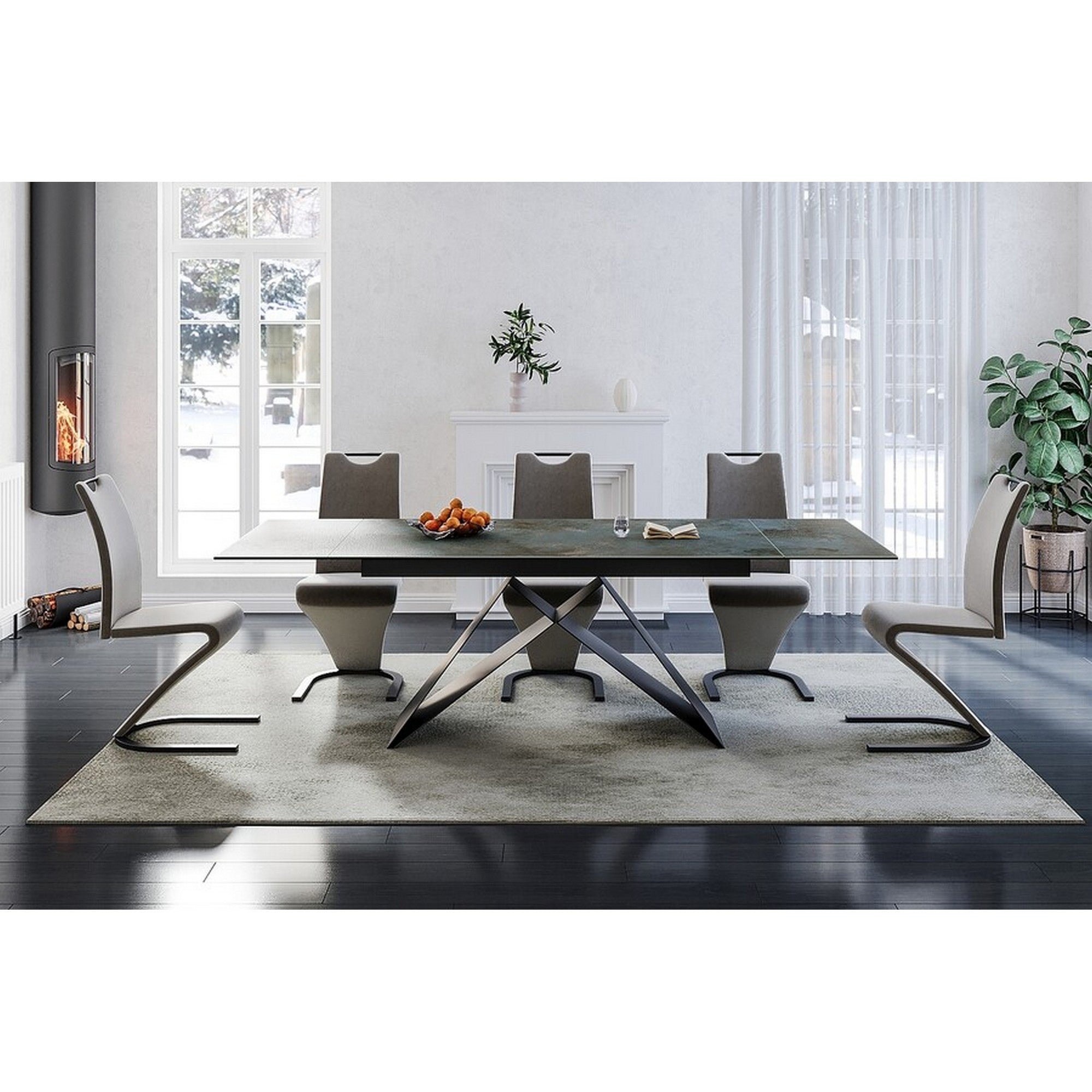 Masa extensibila WESTIN CERAMIC, sticla securizata/ceramica, turcoaz/negru mat, 160-240x90x77 cm
