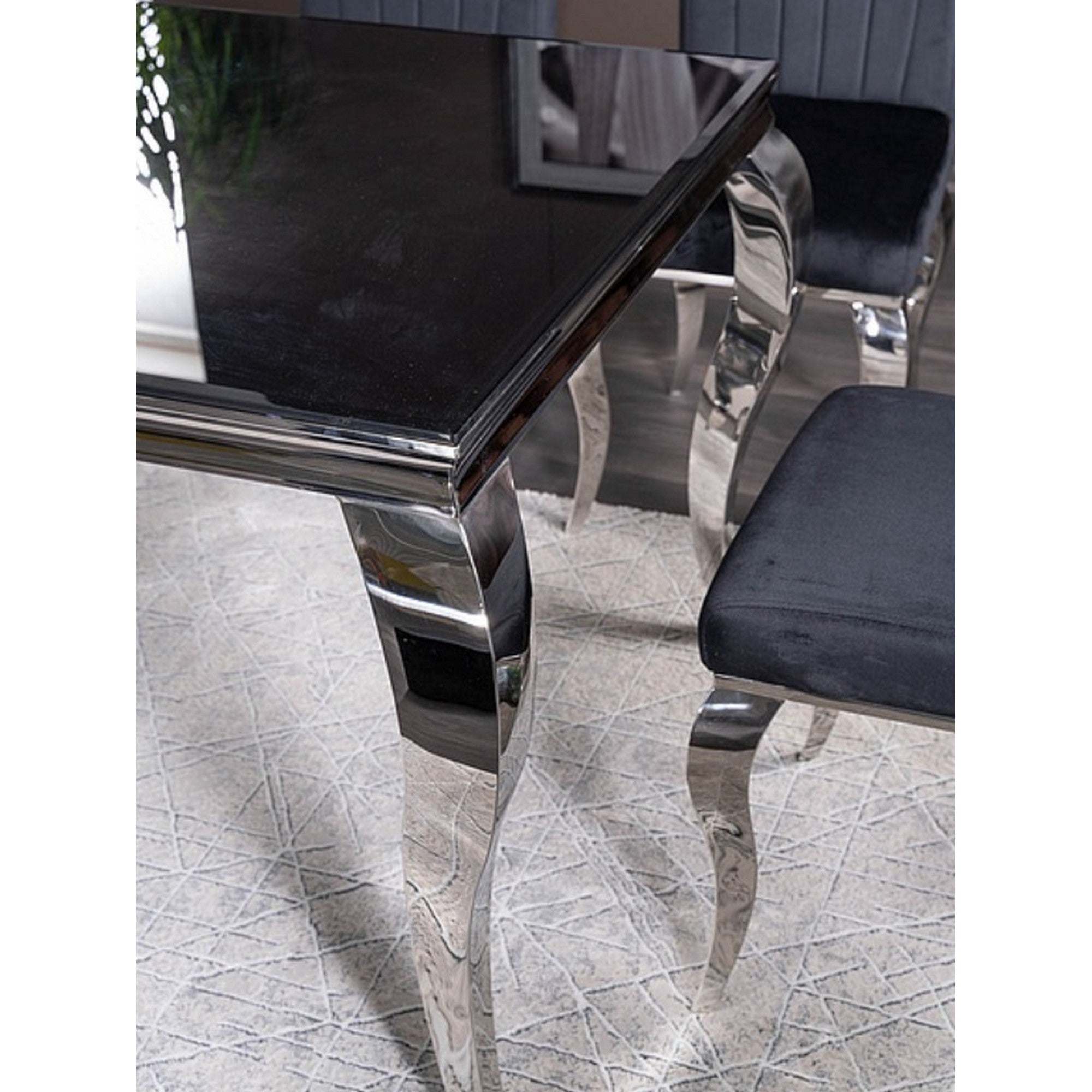 Masa PRINCE, sticla/metal, negru/crom, 180X90X75 cm