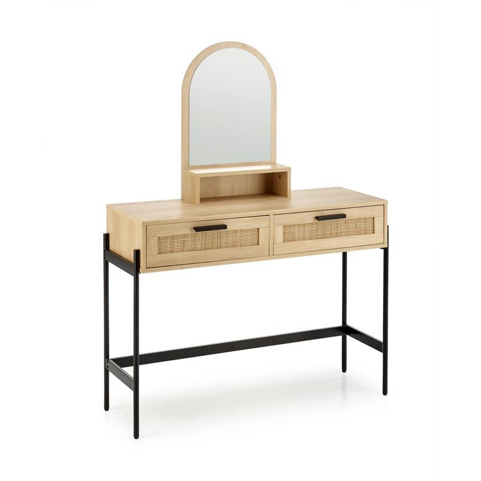 Masa de toaleta CARMEN, stejar/negru, cu oglinda, PAL, 104x35x136 cm