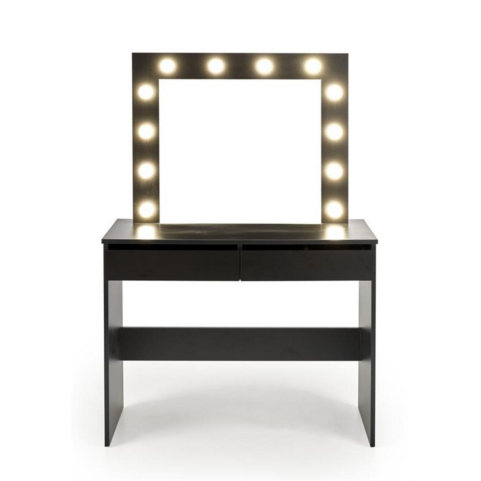 MASA DE TOALETA HOLLYWOOD, NEGRU, ILUMINARE LED, OGLINDA, 2 SERTARE, 94X43X140 CM