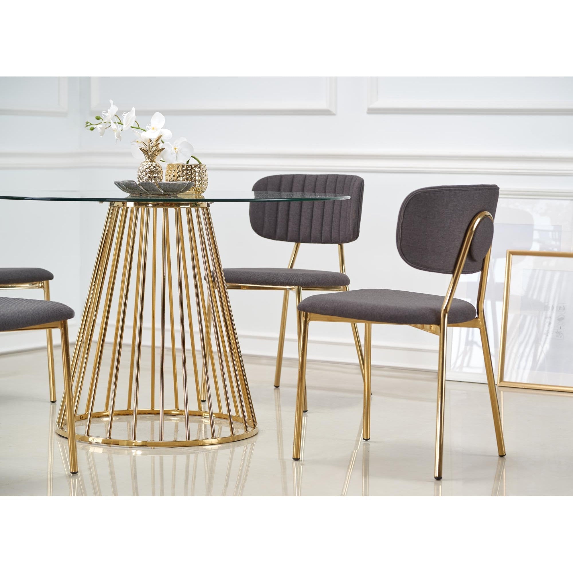 Masa din sticla LIVERPOOL, transparenta/auriu, 120x75 cm