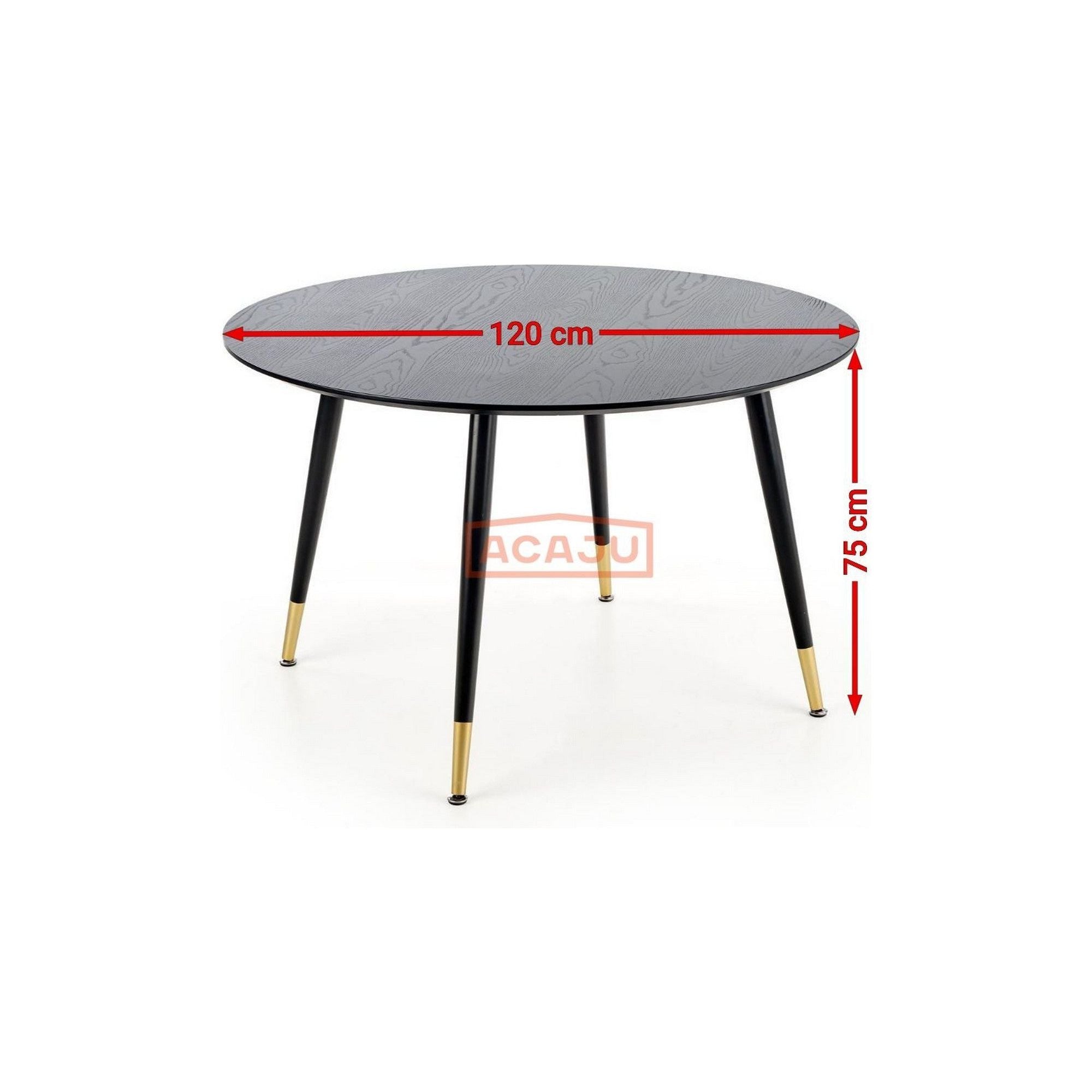 MASA ROTUNDA EMBOS, NEGRU/AURIU, 120X120X75 CM