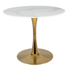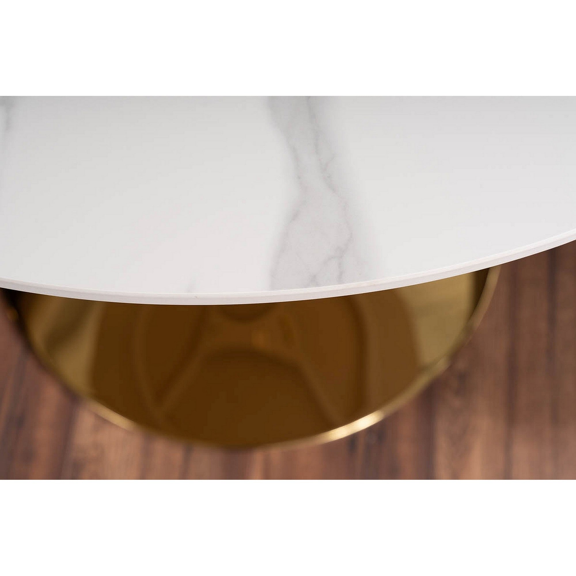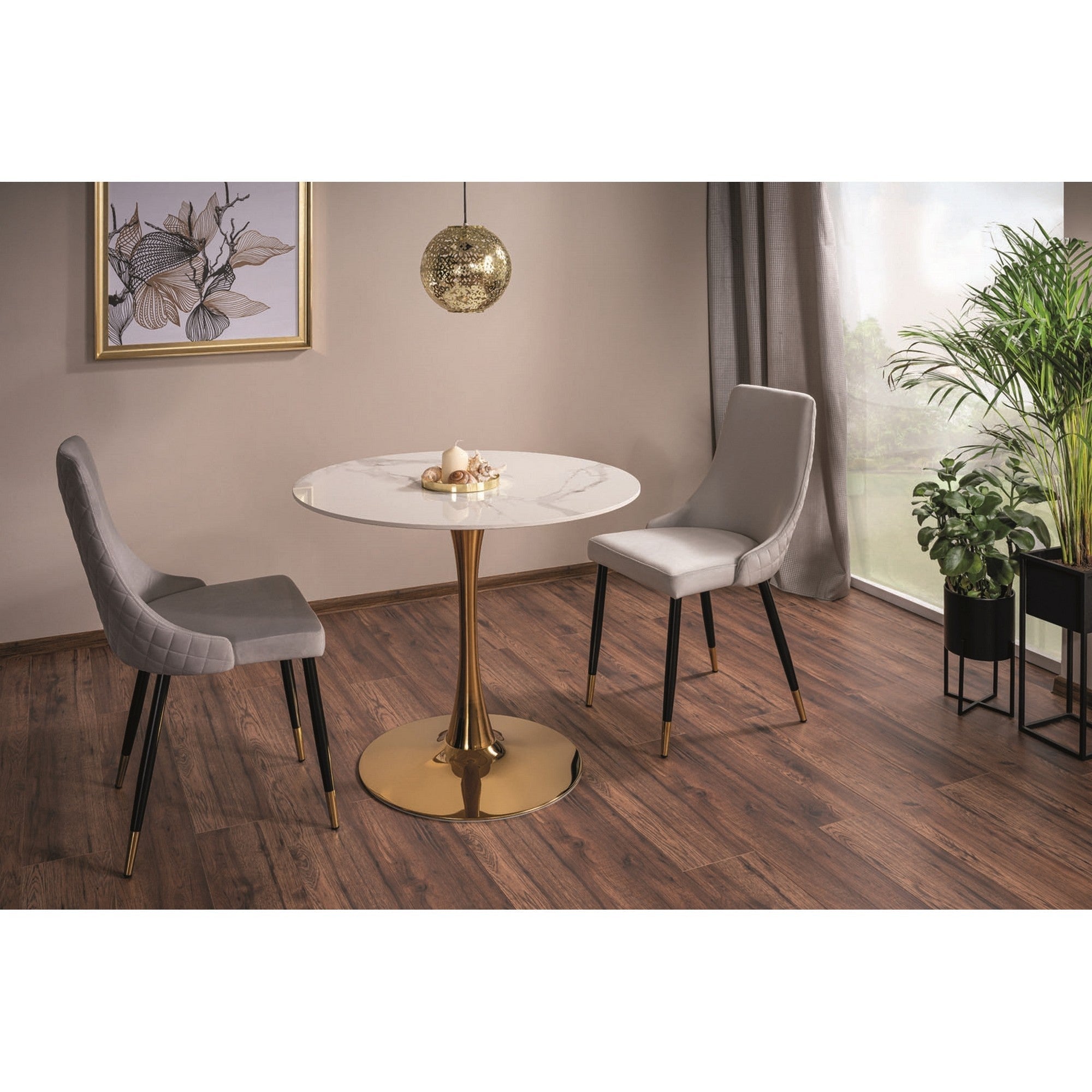 Masa ESPERO, alb cu efect de marmura/auriu, ceramica/metal, 90x90x75 cm