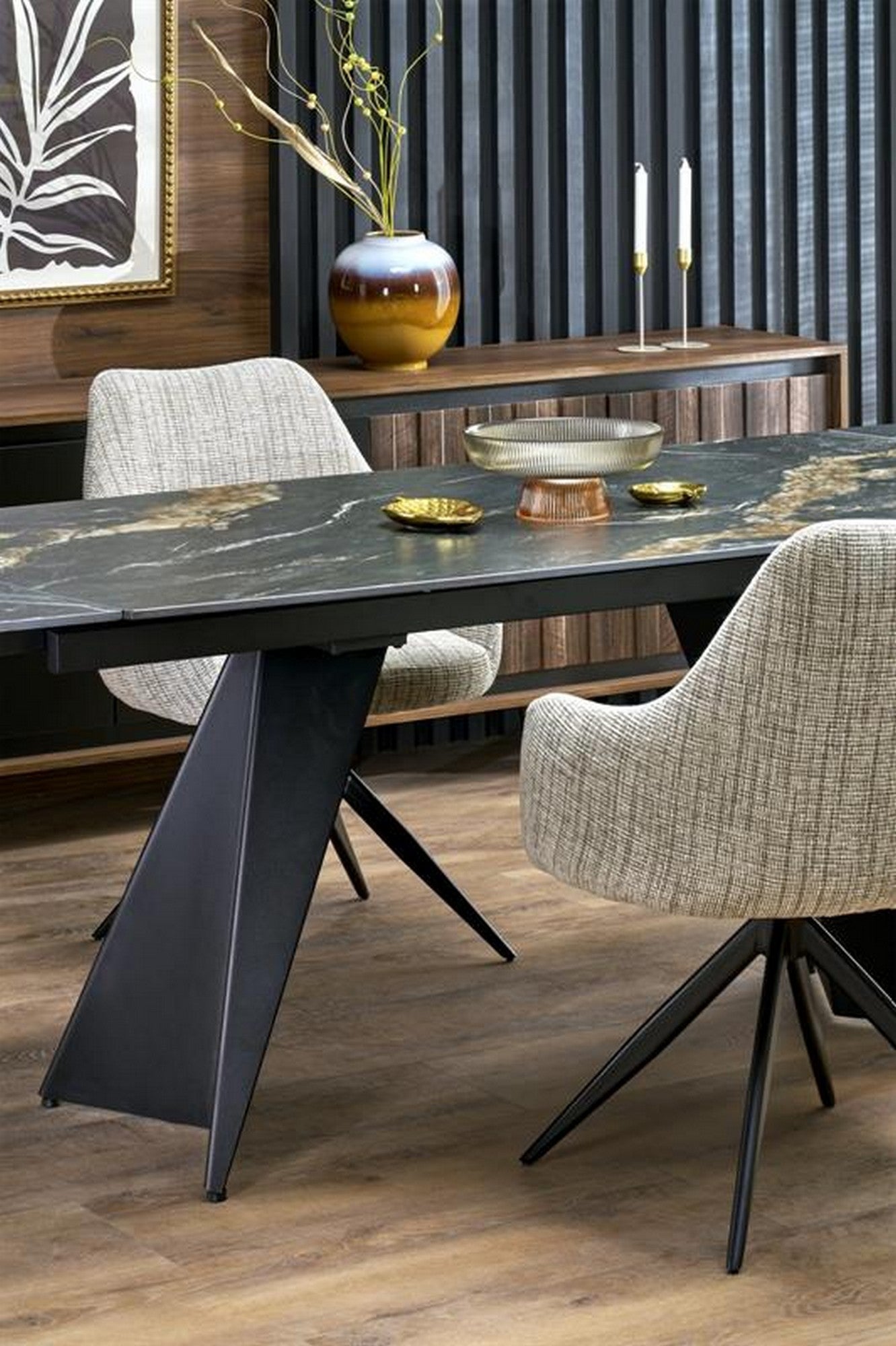 Masa extensibila ARMANI, negru cu efect de marmura/negru, piatra sinterizata/otel, 165-241x90x77 cm