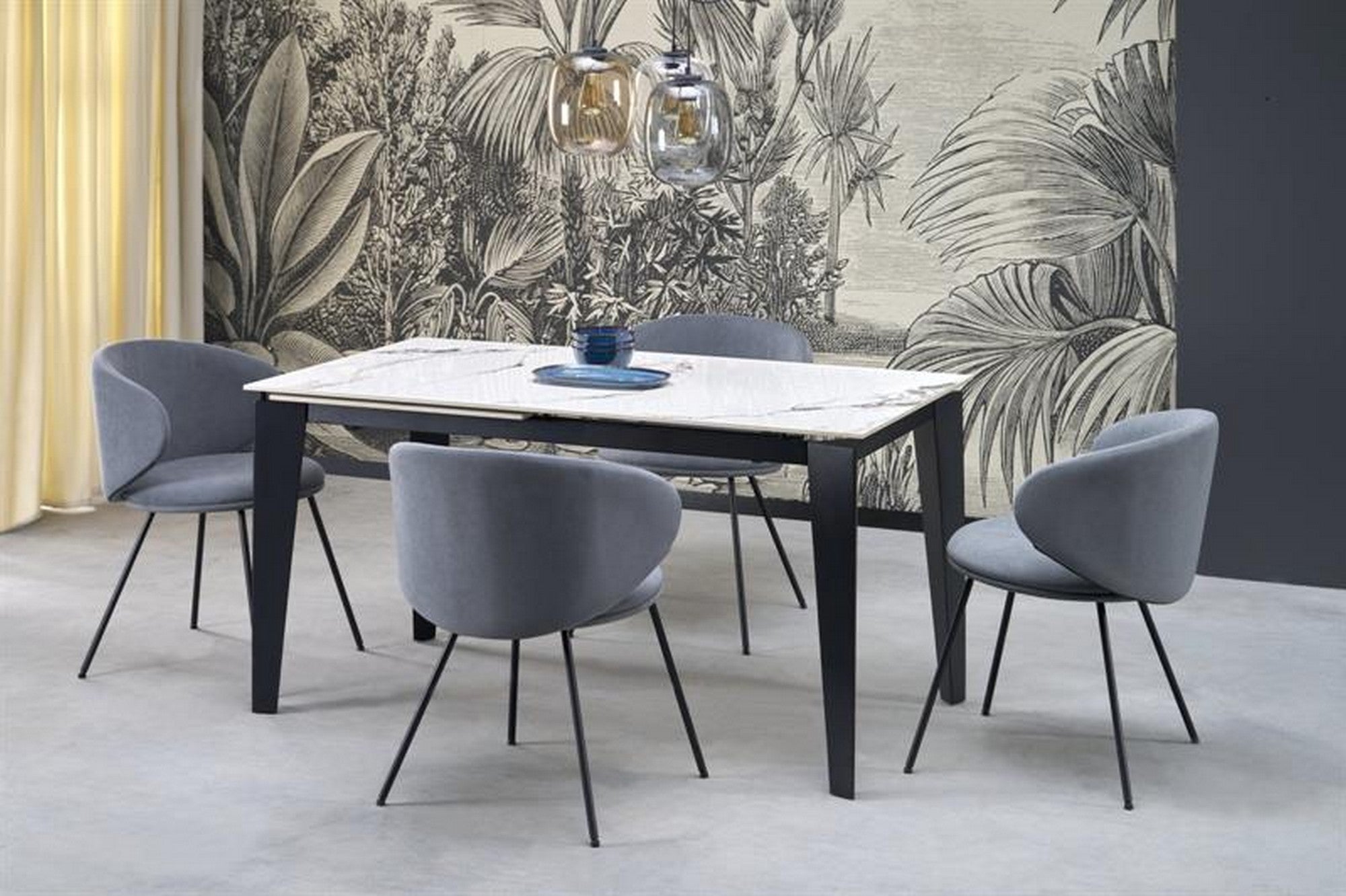 Masa extensibila FELIX, alb cu efect de marmura/negru, piatra sinterizata/otel, 141/201x81x76 cm