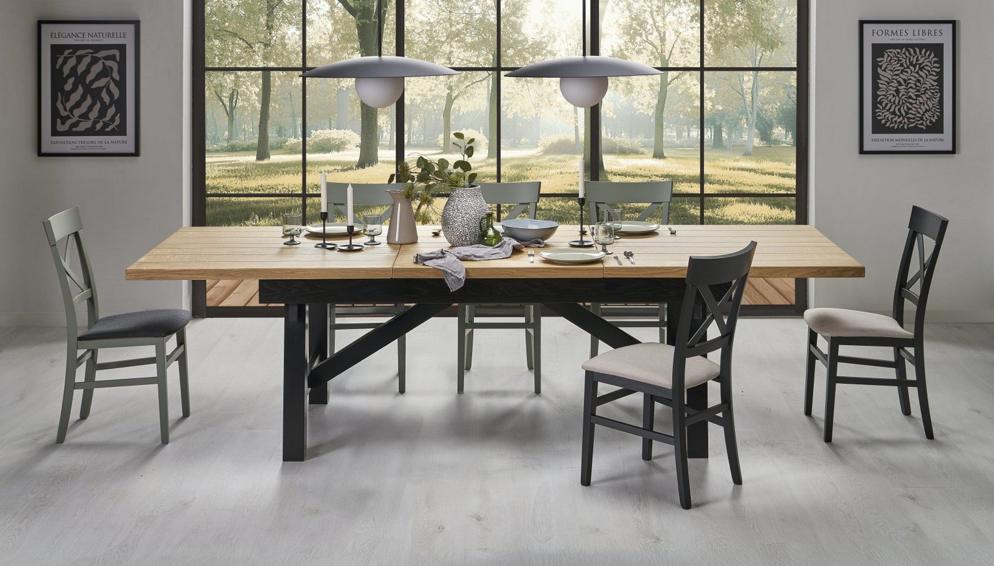Masa extensibila FIESTA, stejar natural/negru, 200/280x100x77 cm