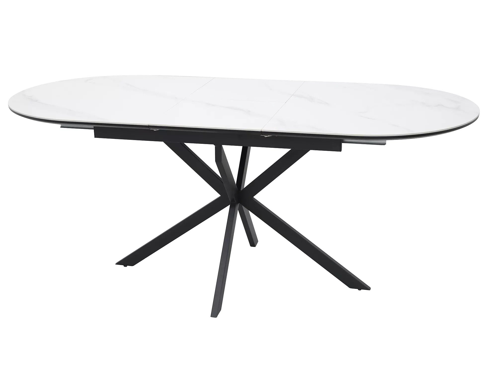 Masa extensibila GASTON, alb mat cu efect de marmura, ceramica/metal, 140/180x80x76 cm