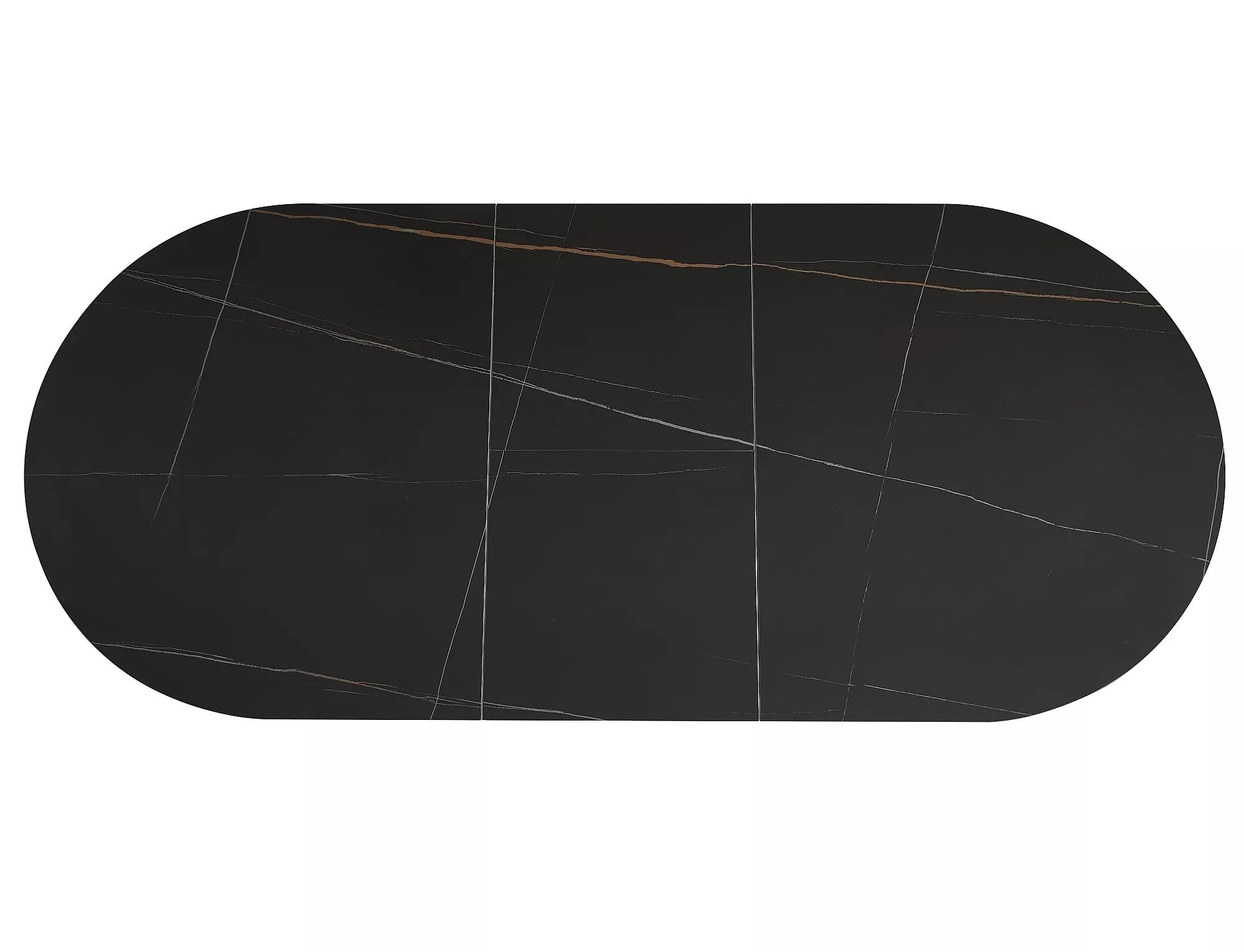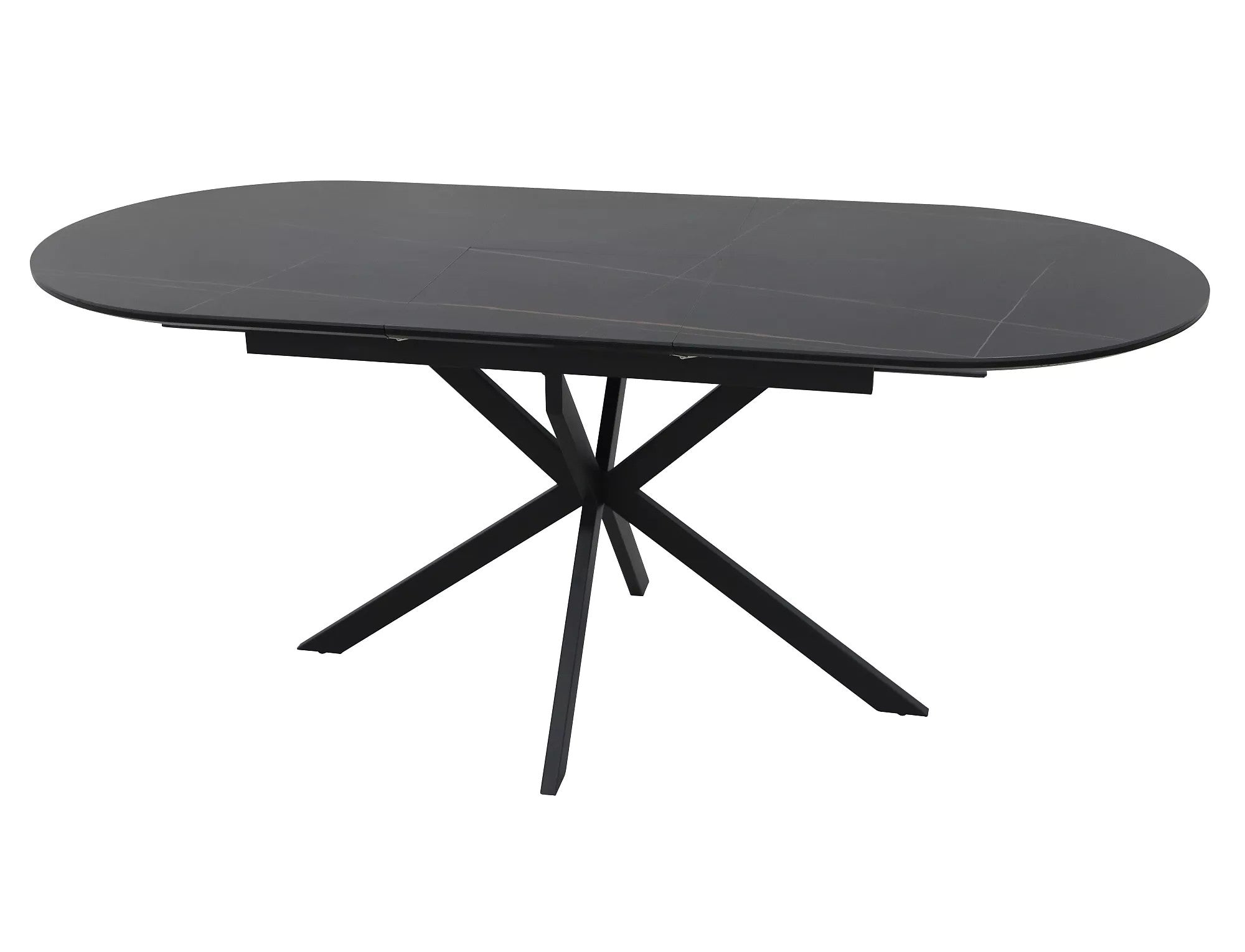 Masa extensibila GASTON, negru mat cu efect de marmura, ceramica/metal, 140/180x80x76 cm
