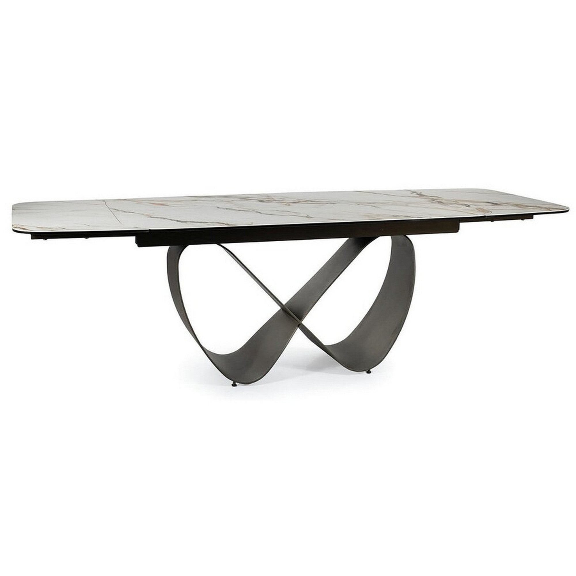 Masa extensibila INFINITY CERAMIC, sticla securizata/ceramica, alb/maro, 160-240x95x76 cm