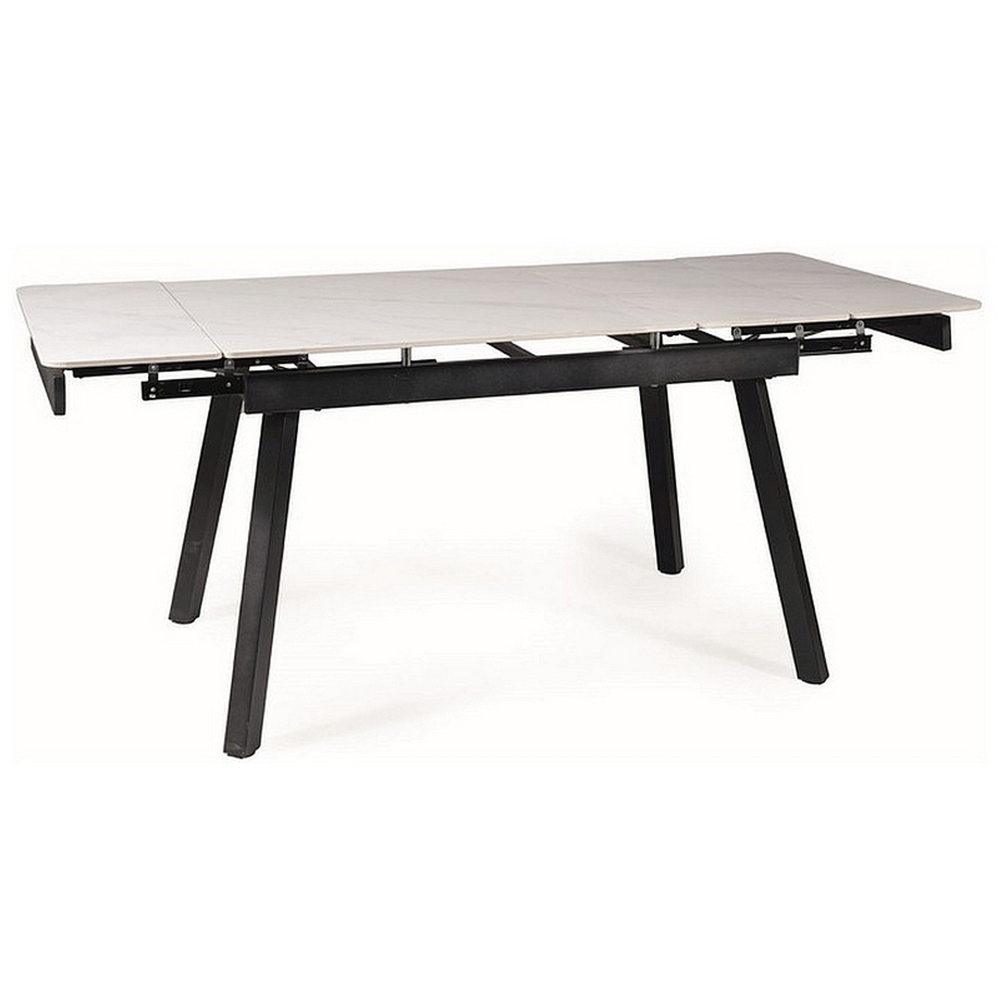 Masa extensibila JOHN, alb lucios/negru mat, ceramica/metal, 150-210x90x76 cm