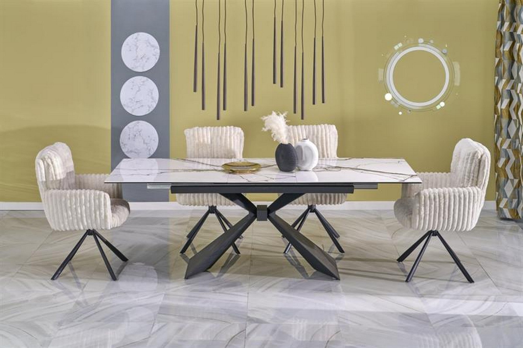 MASA EXTENSIBILA LUCIANO, ALB CU EFECT DE MARMURA/NEGRU, CERAMICA/STICLA/OTEL, 180/230X90X76 CM