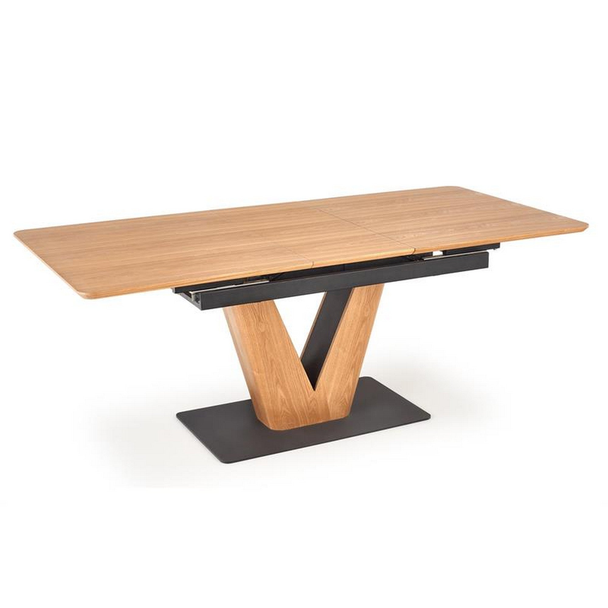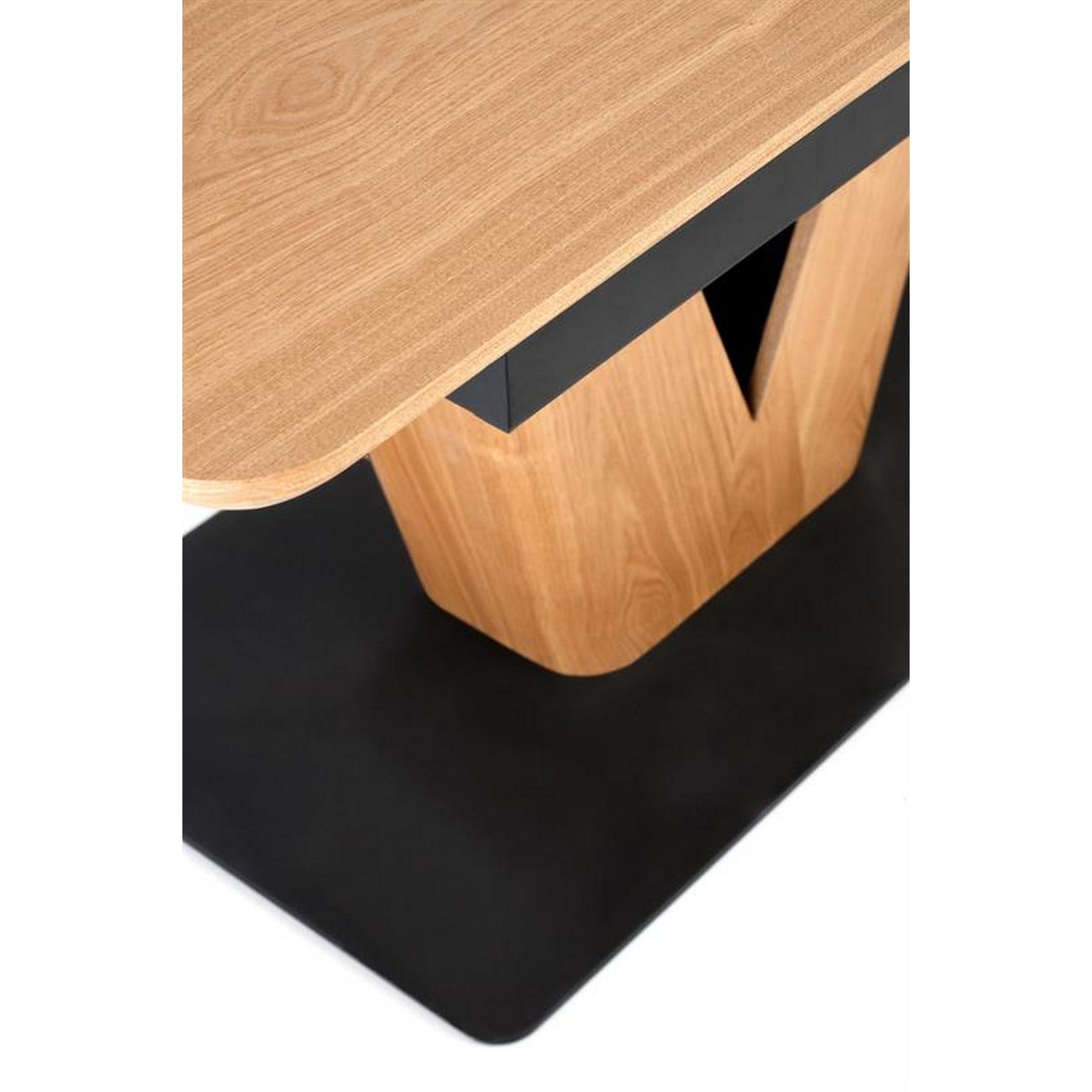 - Blatul este realizat din MDF cu furnir, iar cadrul din MDF lacuit si metal negru.