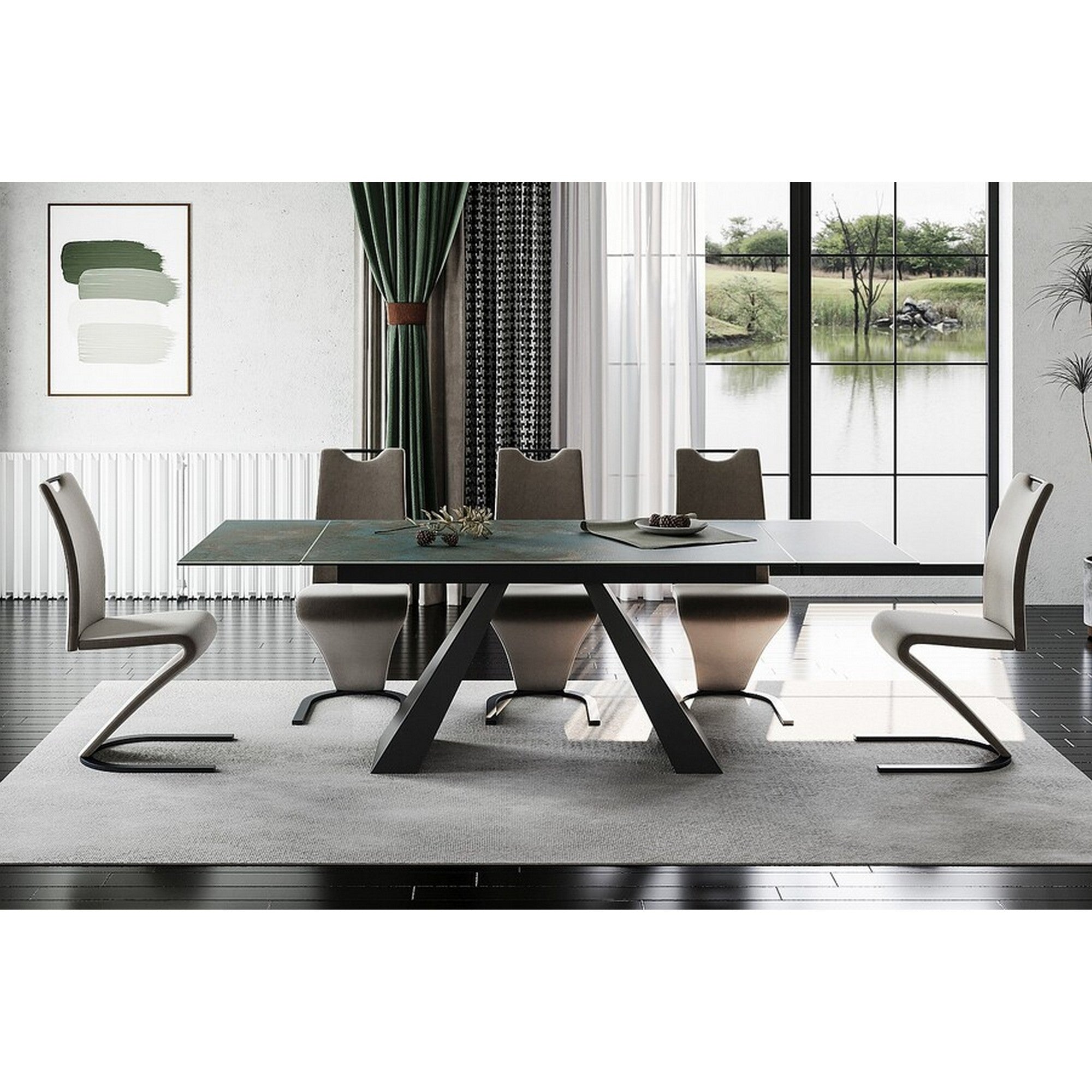 Masa extensibila SALVADORE CERAMIC, turcoaz/negru mat, sticla securizata/ceramica, 160-240x90x76 cm