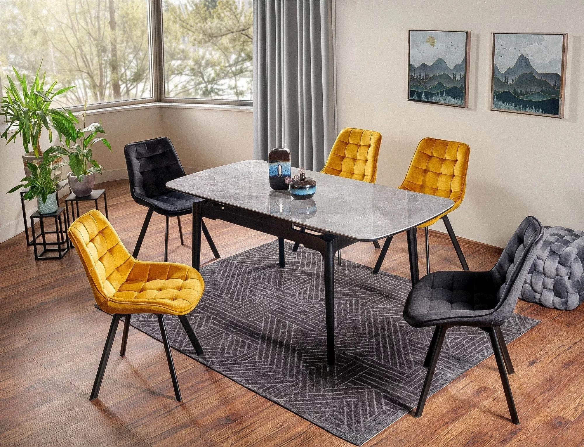 Masa extensibila SENTO, gri cu efect de marmura, ceramica/lemn, 120/180x80x76 cm