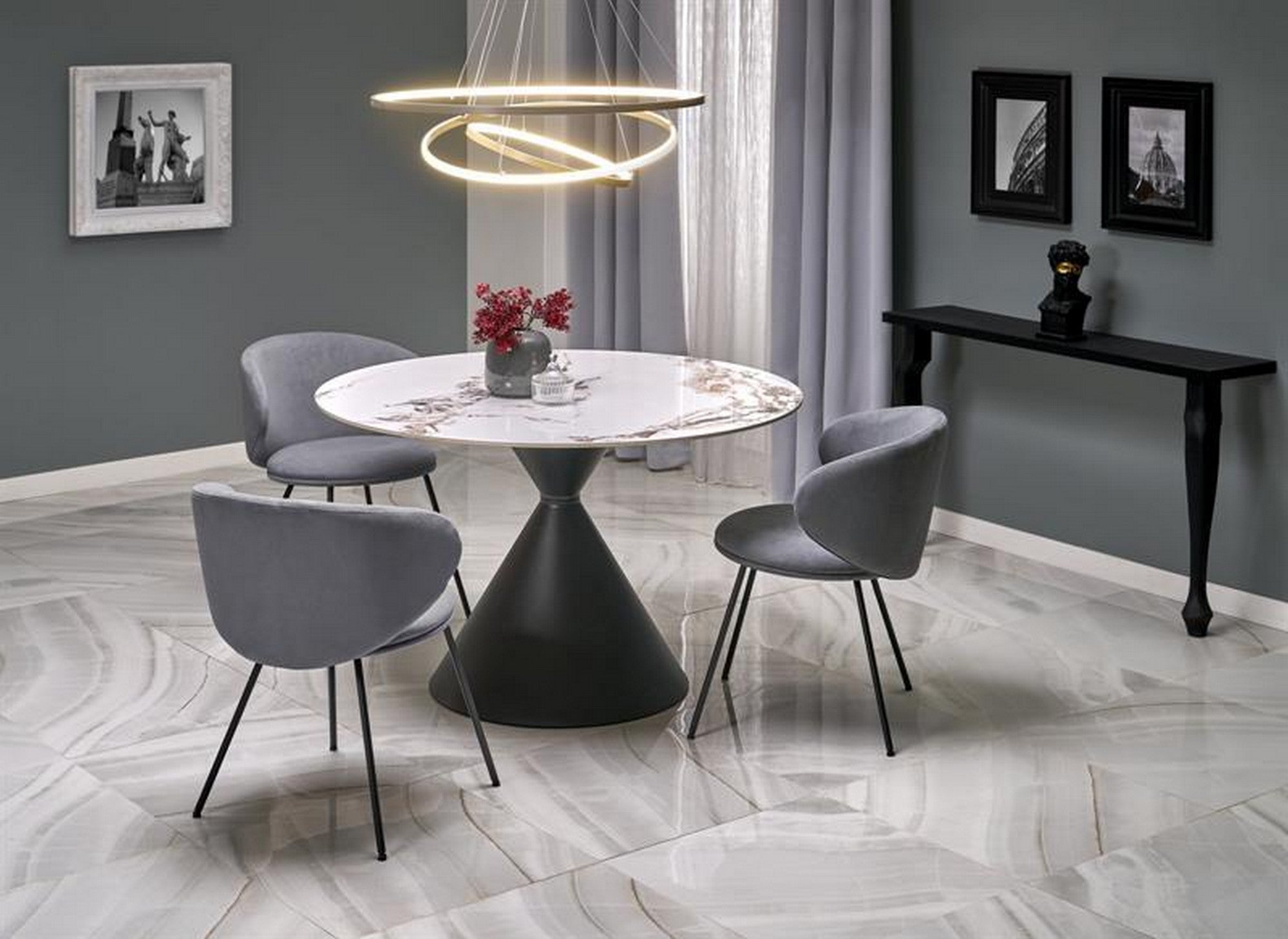 Masa GARET, alb cu efect de marmura/negru, piatra sinterizata/otel, 120x76 cm