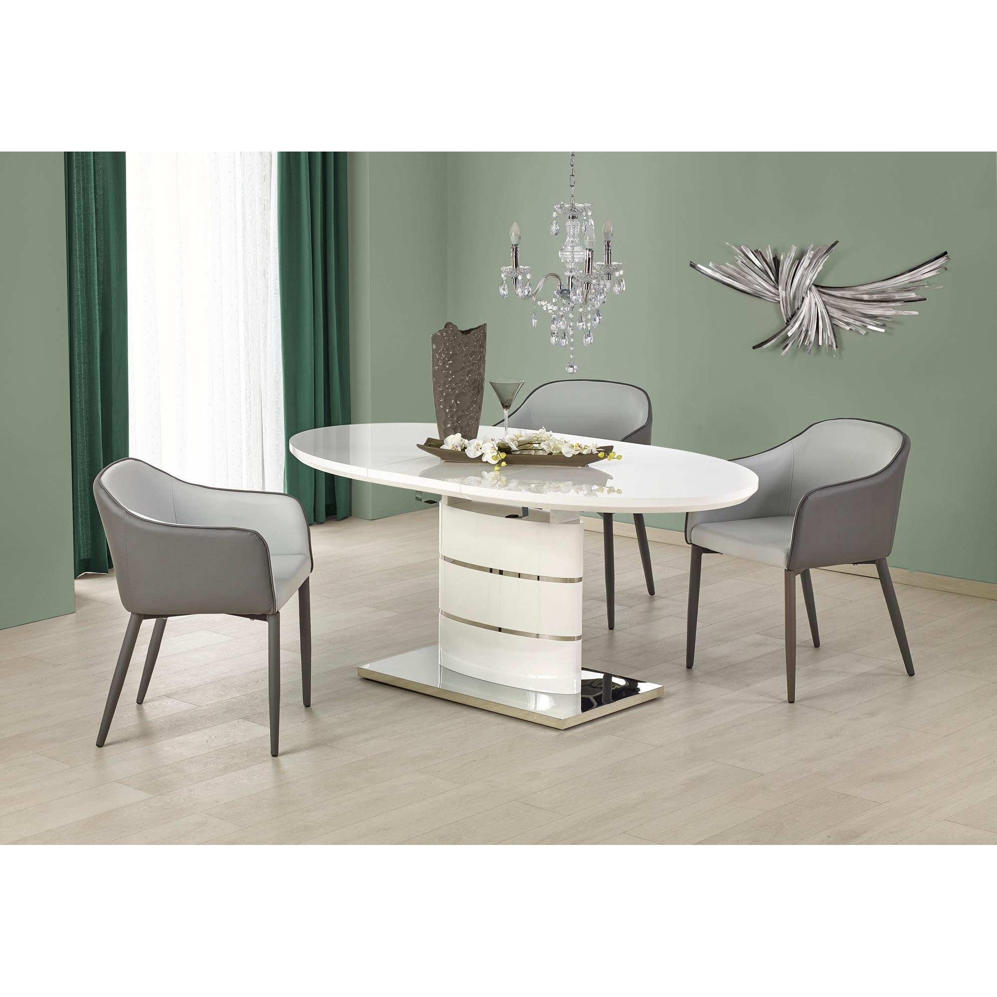 Masa ovala cu un picior alba Aspen, 140/180X90X76 CM