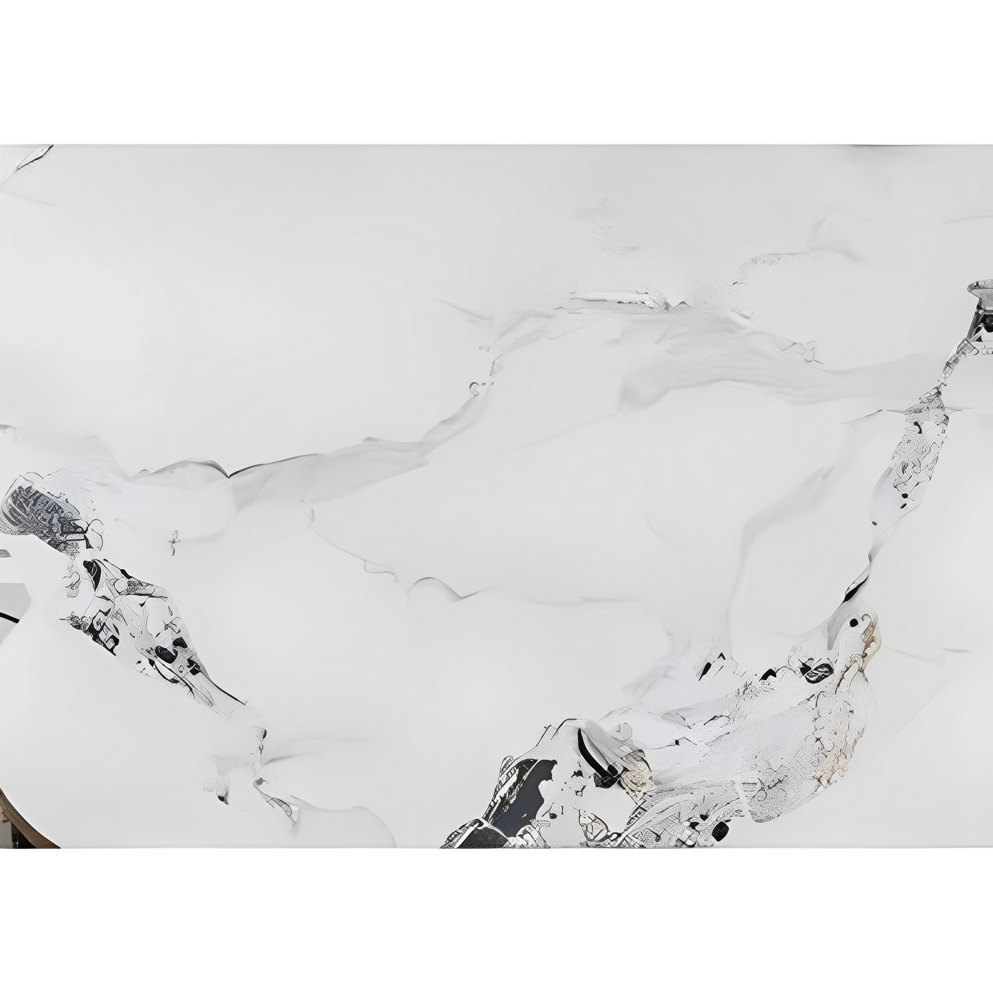- Material: Blatul este realizat din ceramica cu efect de marmura, iar cadrul din metal