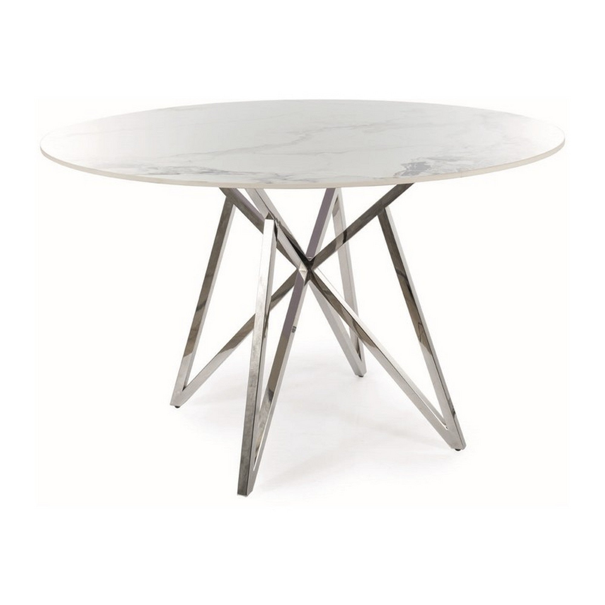 Masa MURANO, alb/crom, ceramica si metal, 120x76 cm