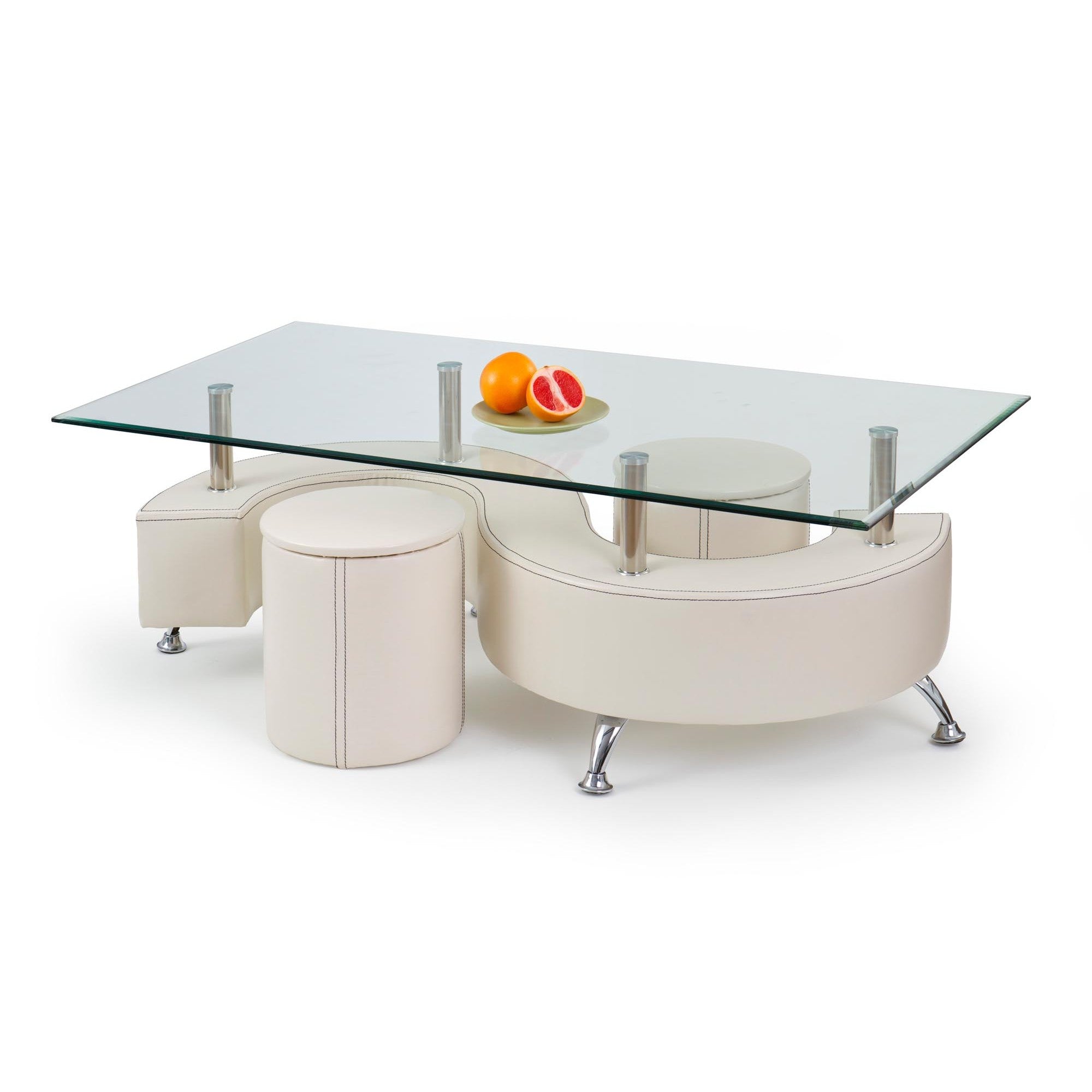 DE CE SA ALEGI MASA STICLA ALBA CU TABURETI NINA 3 CU 2 TABURETI TAPITATI, 130X70X45 CM LXlXH?