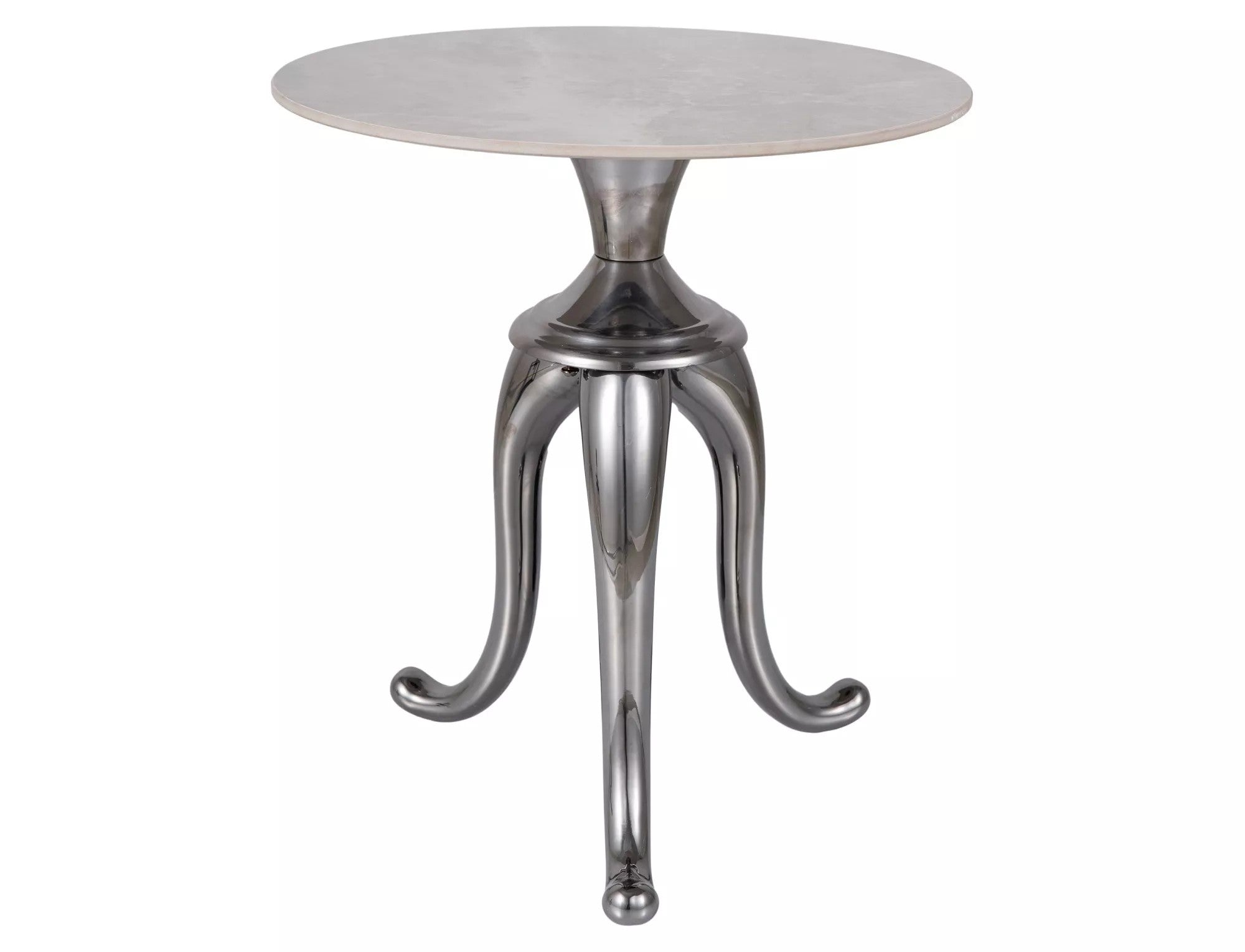 Masuta cafea SNAKE, alb cu efect de marmura/argintiu, ceramica/metal, 48x55 cm