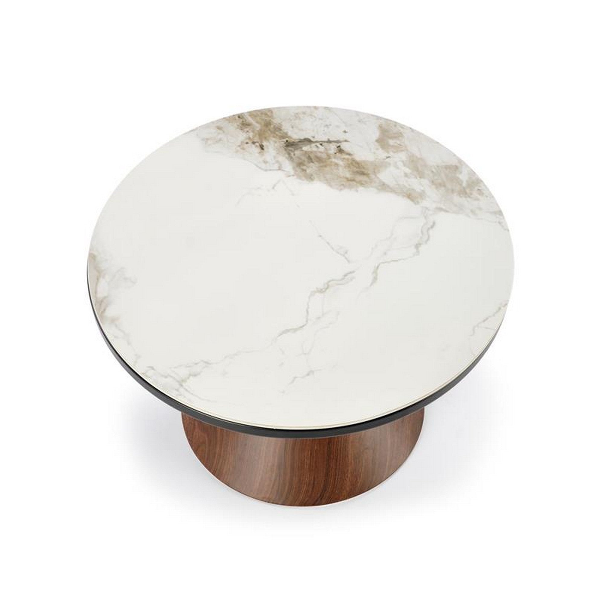 Masuta de cafea GENESIS, marmura alba/nuc, ceramica, 70x43 cm