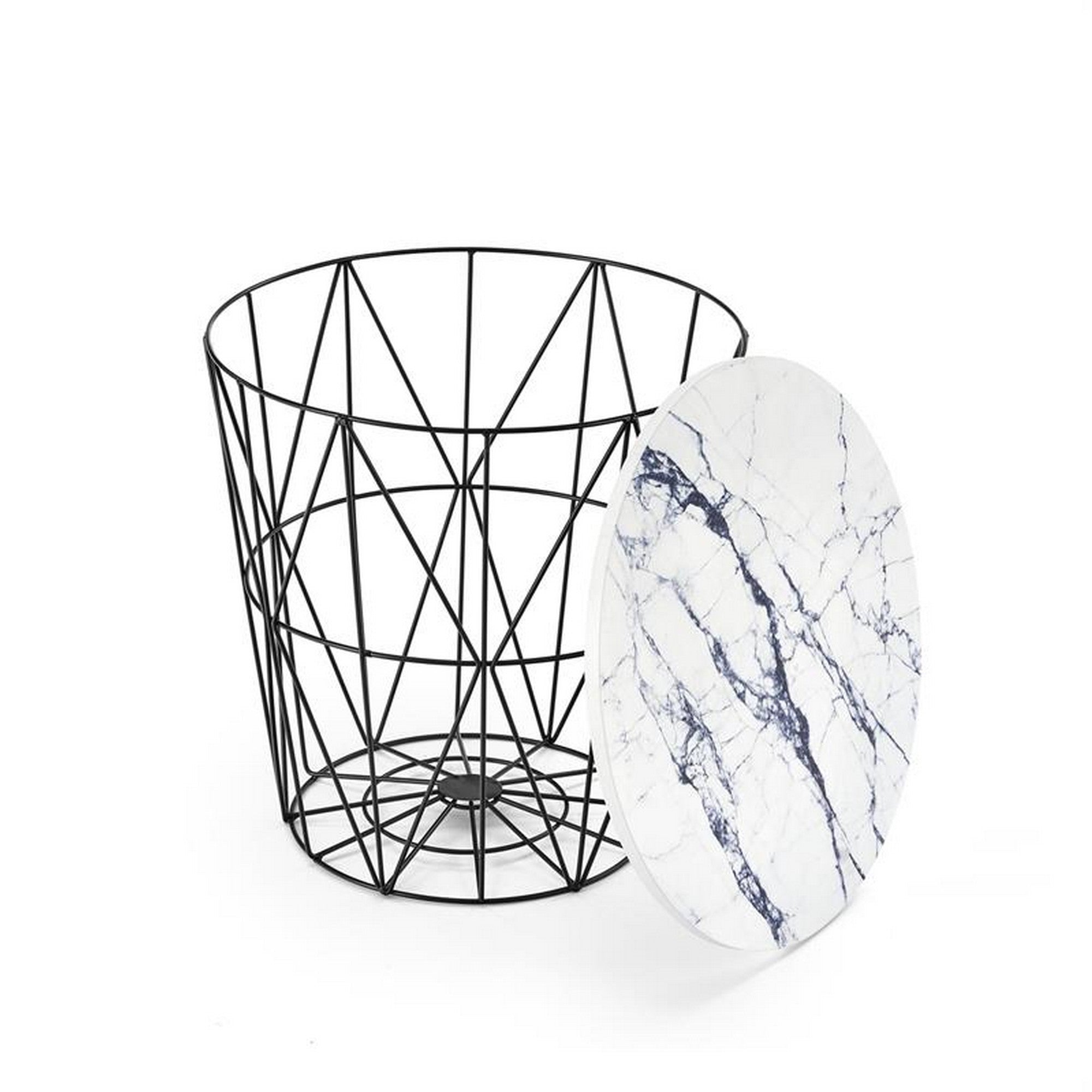 Masuta de cafea HARISSA B, marmura alba/negru furniruit, 42x41 cm