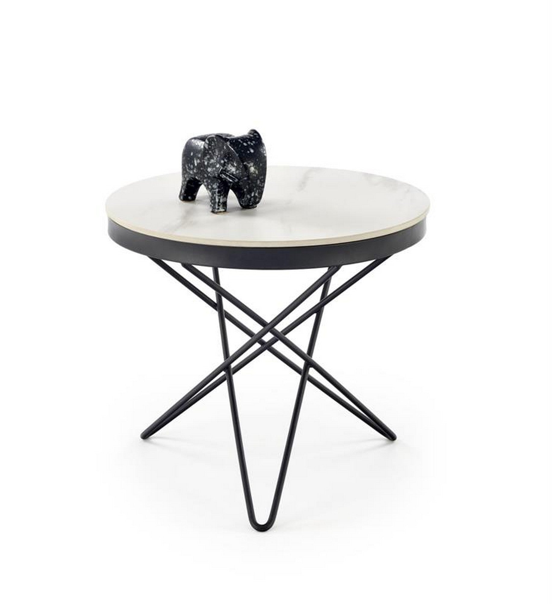 Masuta LEILA 2, alb cu efect de marmura/negru, piatra sinterizata/otel, 60x55 cm