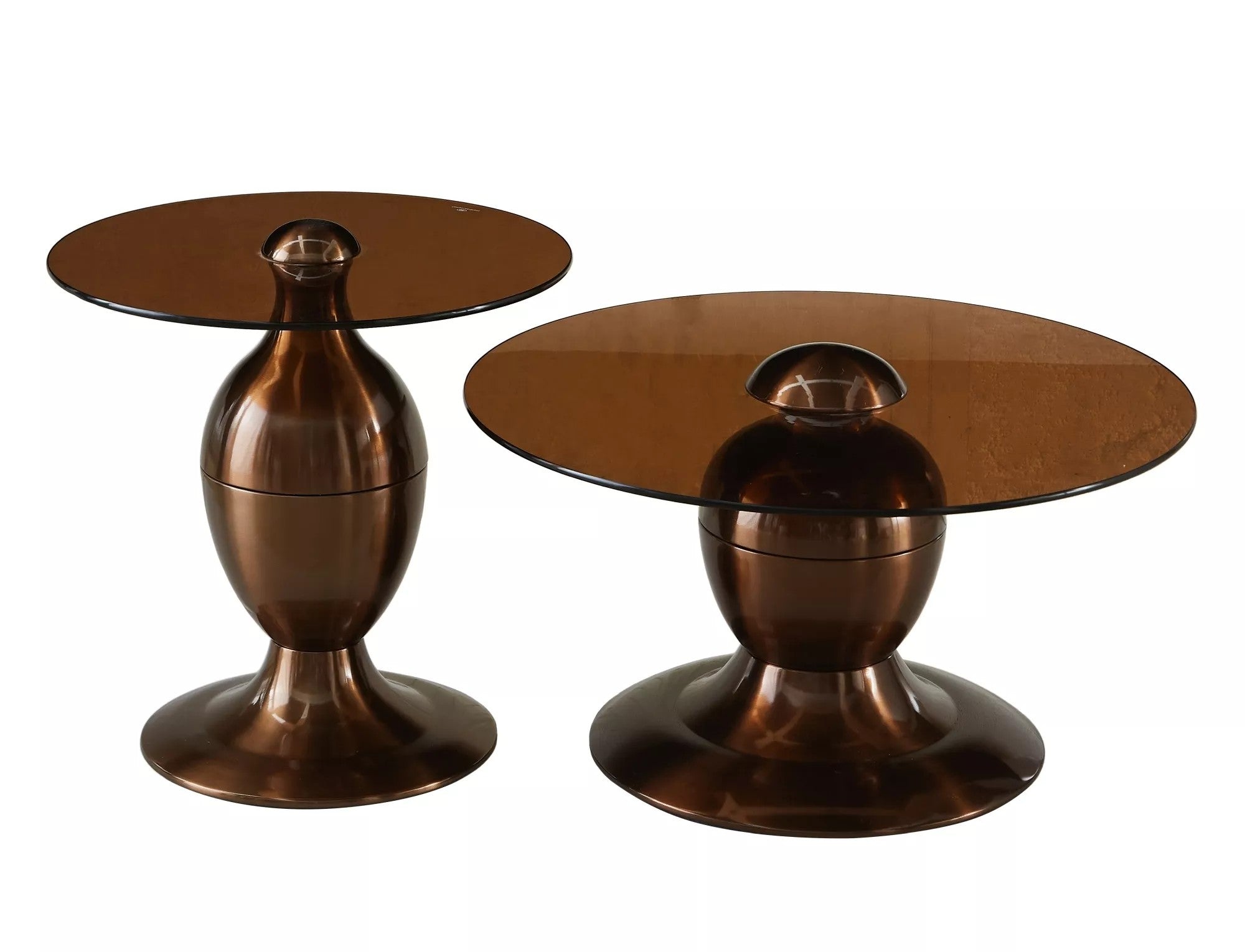 Set 2 masute cafea CASSIE, maro/cupru, sticla/metal