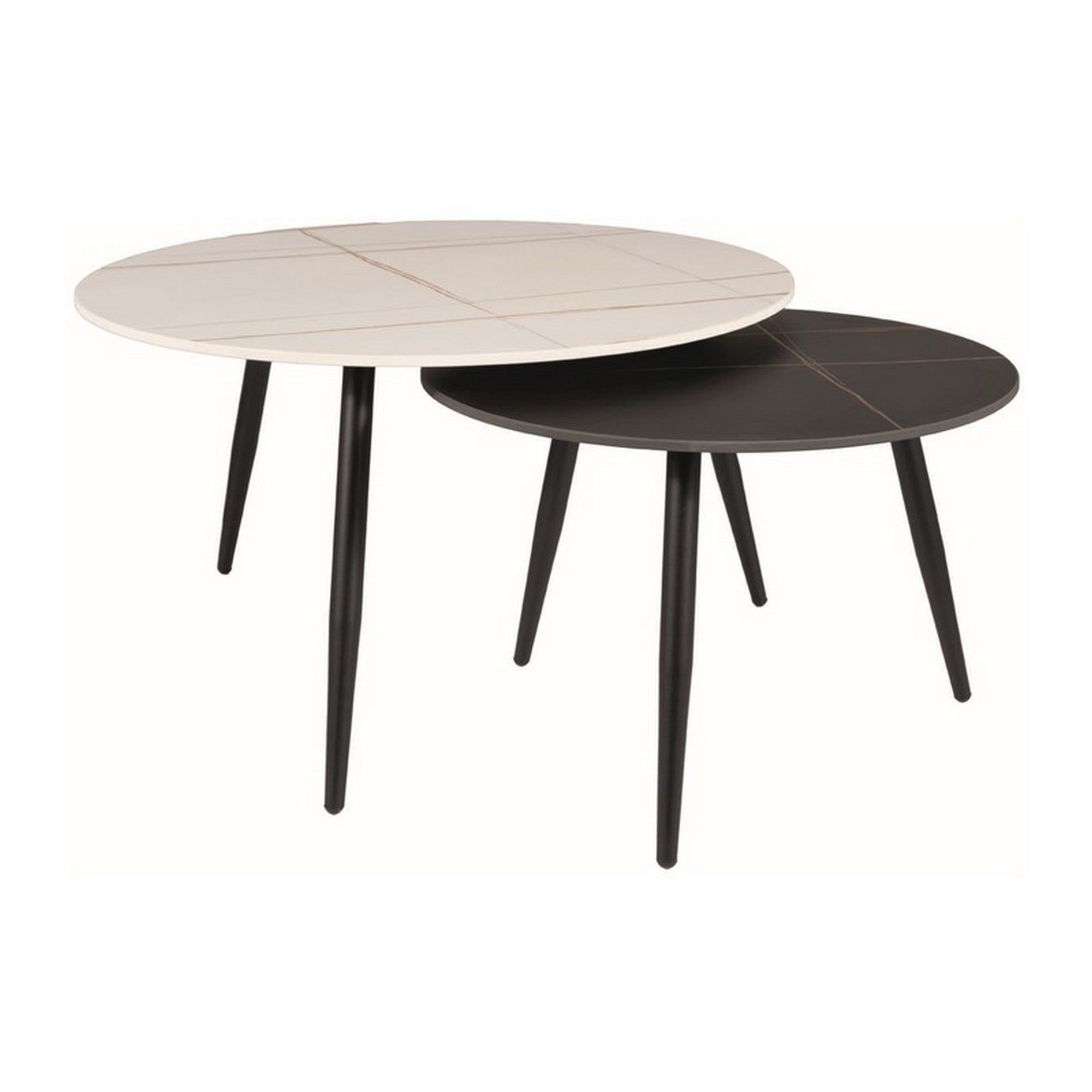 Set 2 masute cafea KORA B, negru mat/alb mat, ceramica/metal