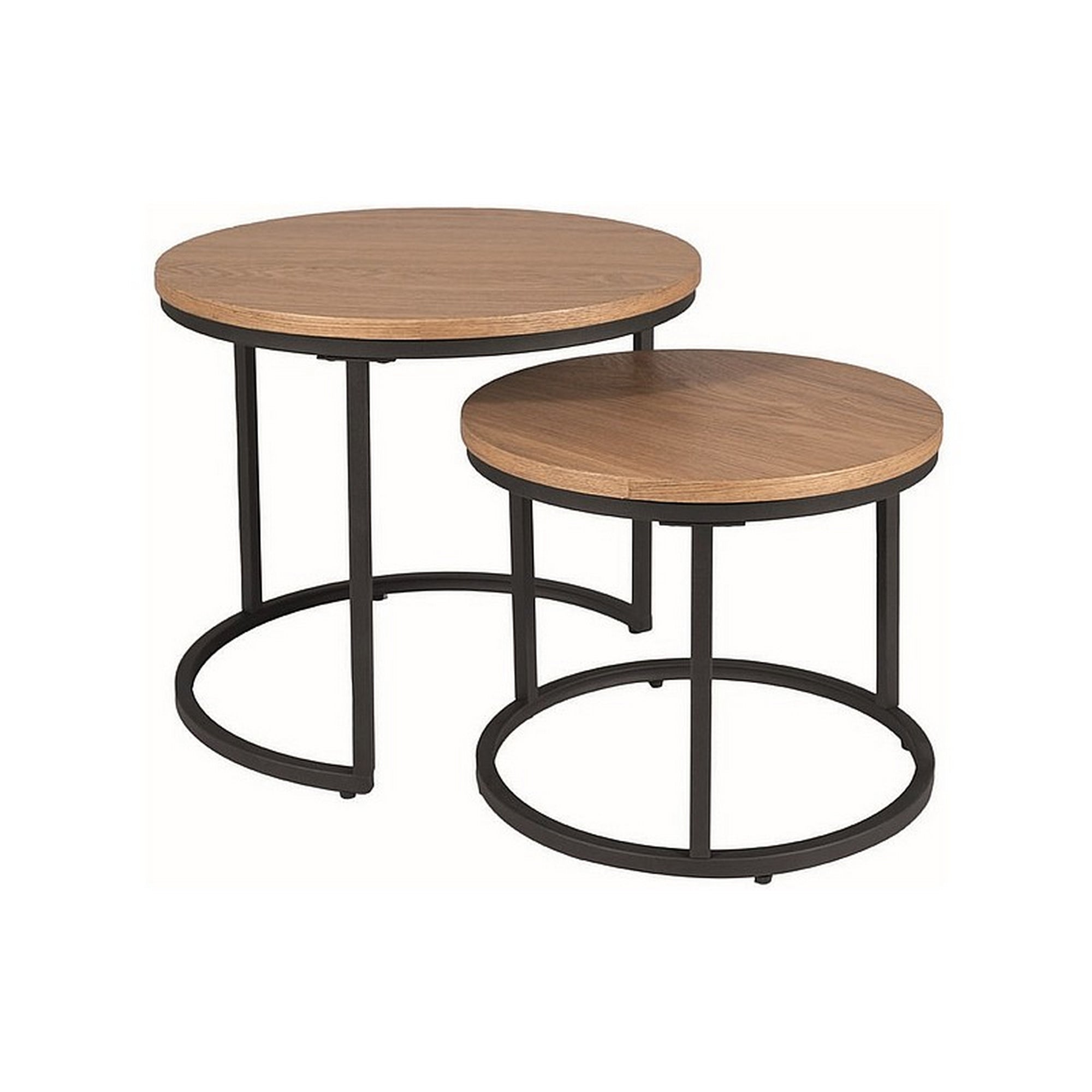 Set 2 masute de cafea AMARO, stejar/negru, metal , 53x45/43x35 cm