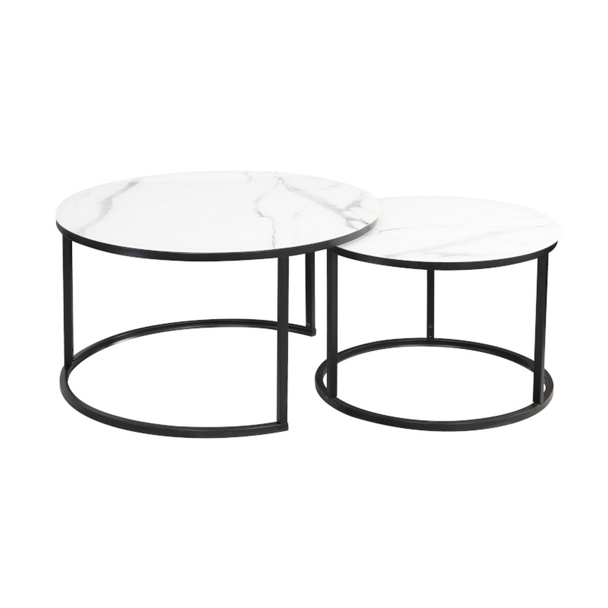 Set 2 masute de cafea ATLANTA C blat de sticla alb,efect de marmura/cadru metal negru