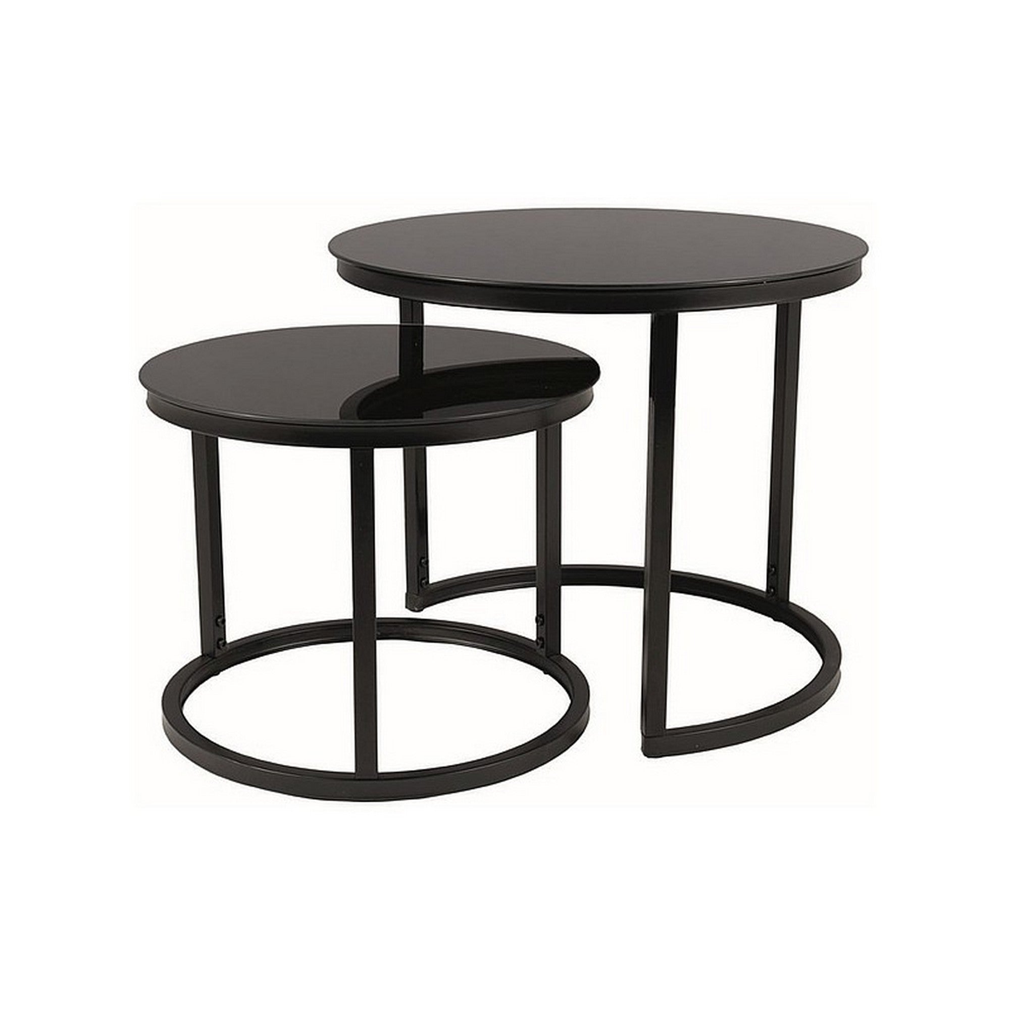 Set 2 masute de cafea ATLANTA D II, sticla/metal, negru