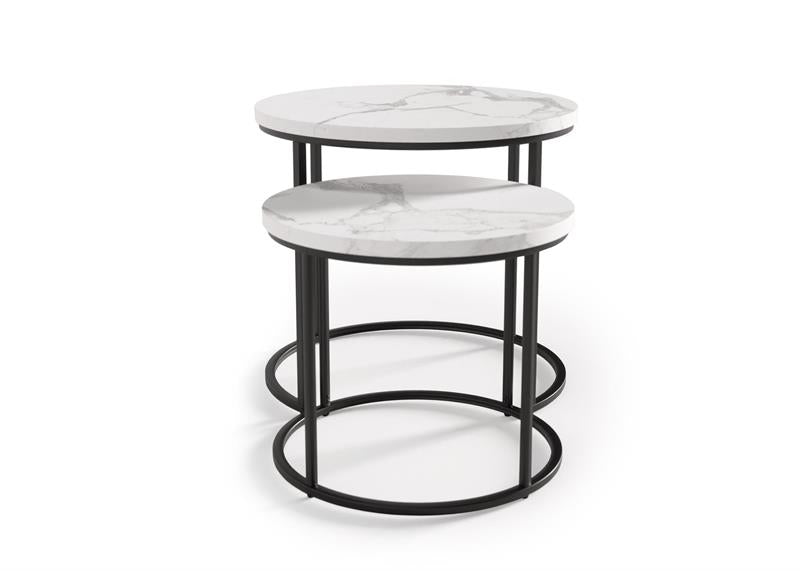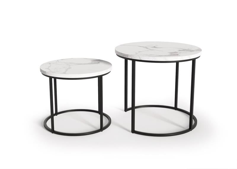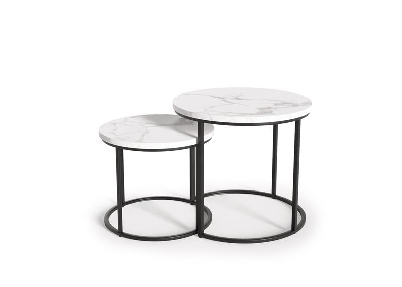 Set 2 masute de cafea OREO, alb/negru furniruit, 53x45 cm si 43x35 cm