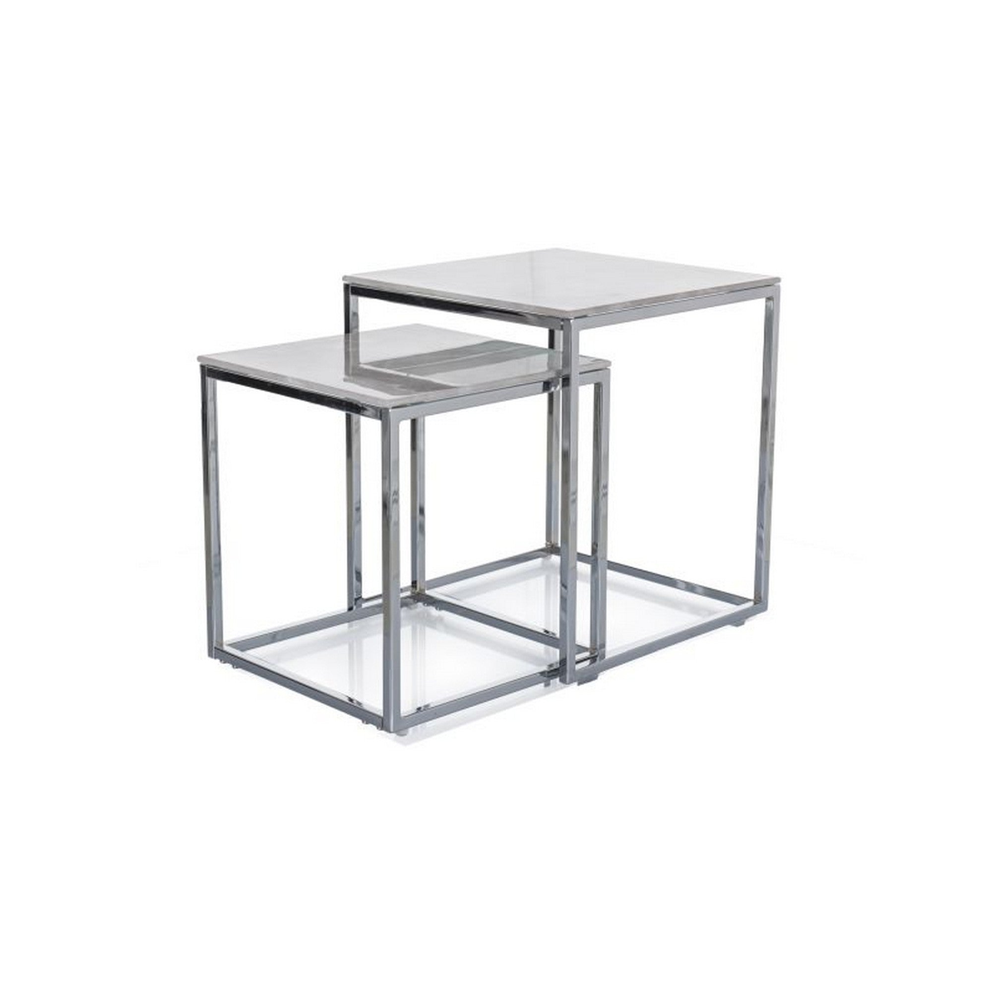 Set 2 masute GLORIA II, alb/crom, sticla/metal, 40x40x44/35x35x37 cm