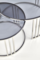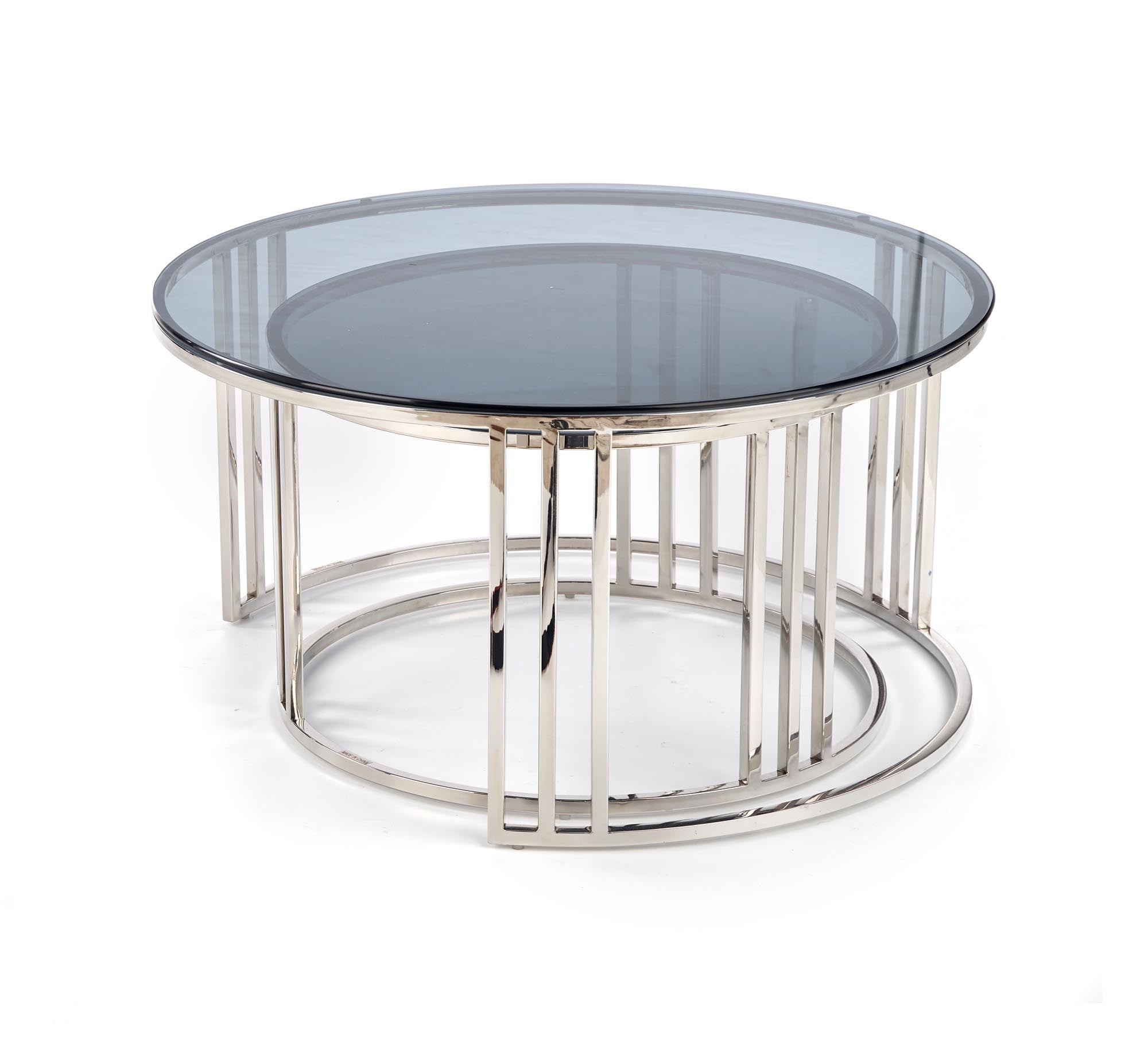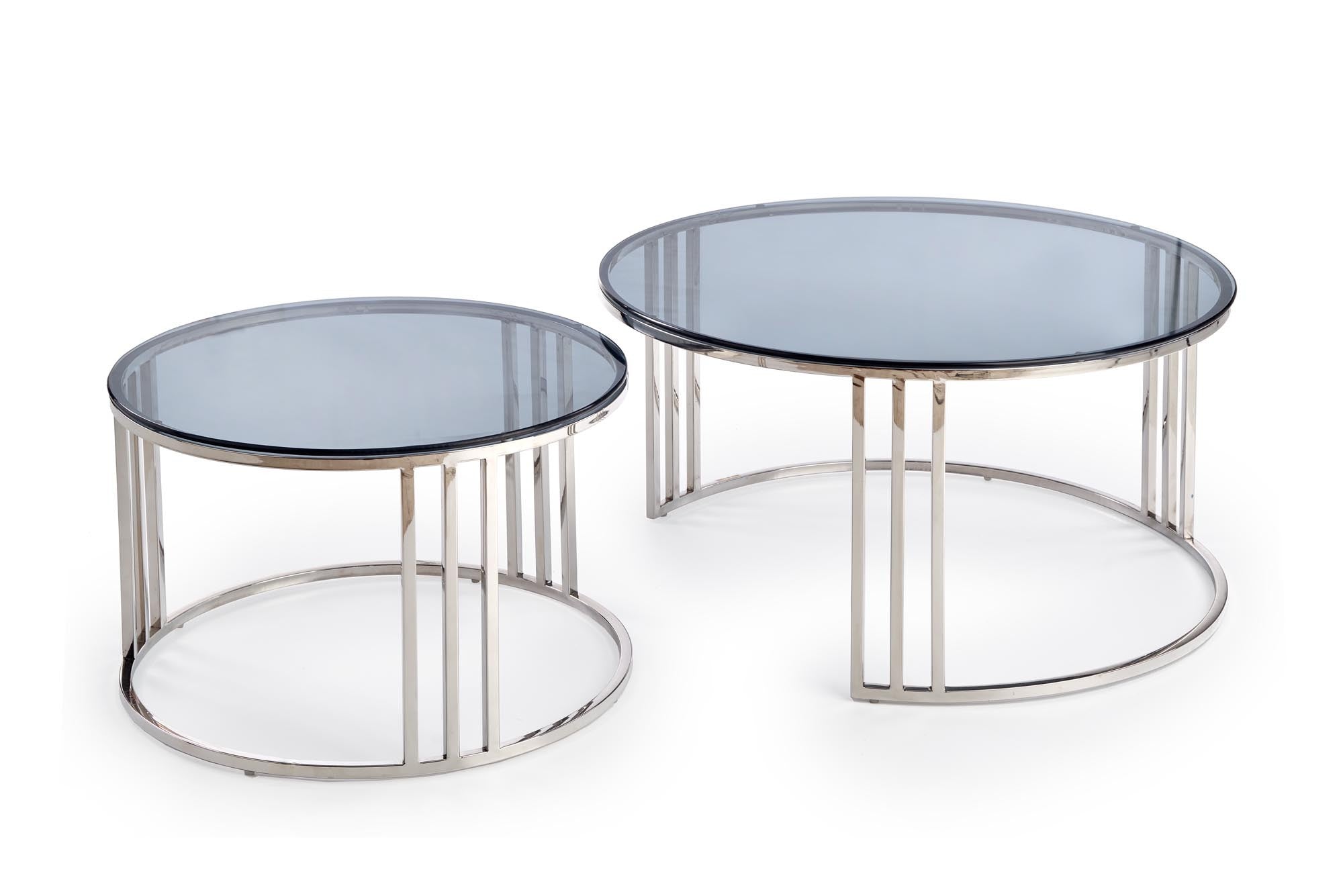 Set 2 masute MERCURY, fumuriu/argintiu, sticla/metal