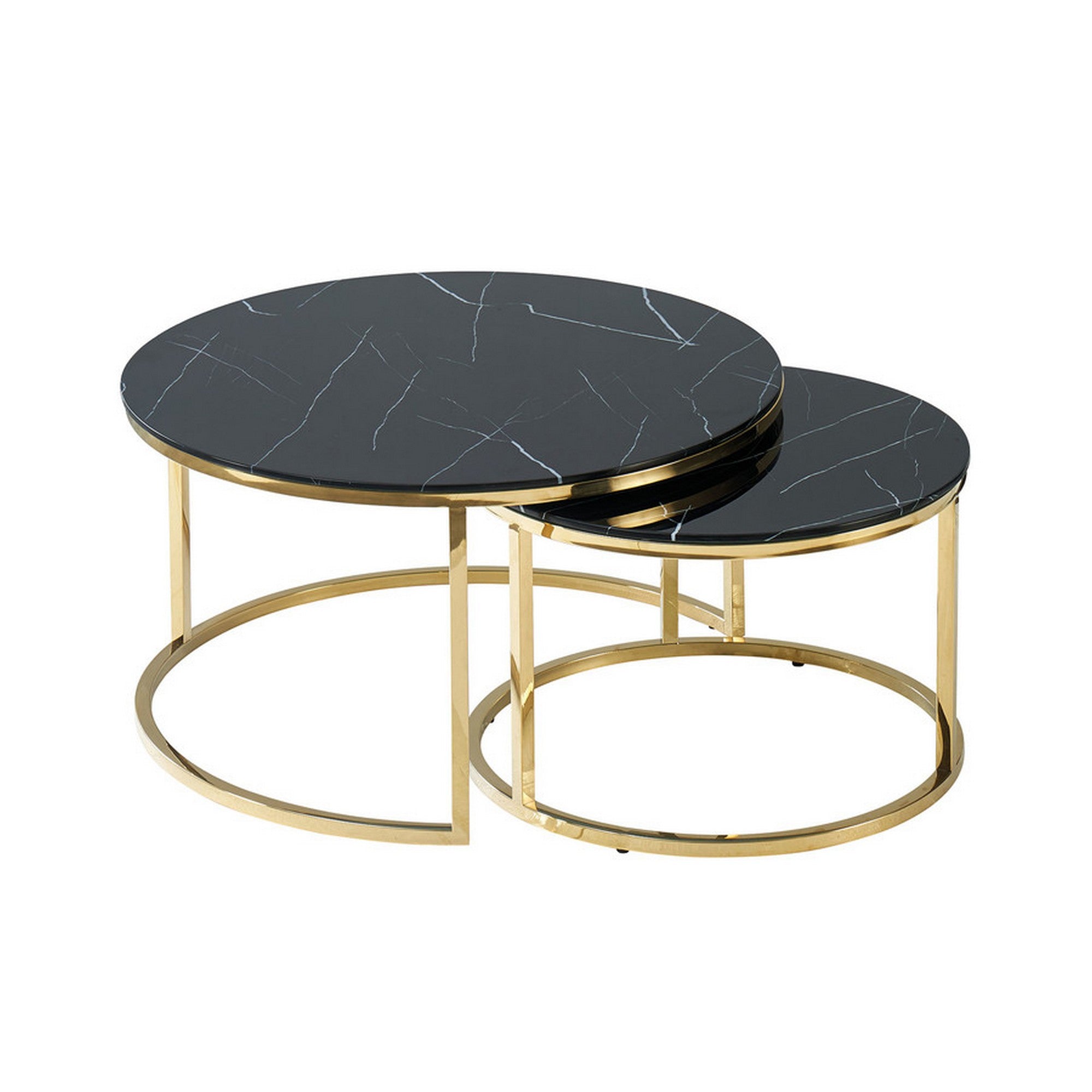 Set 2 masute MUSE, sticla/otel, negru/auriu