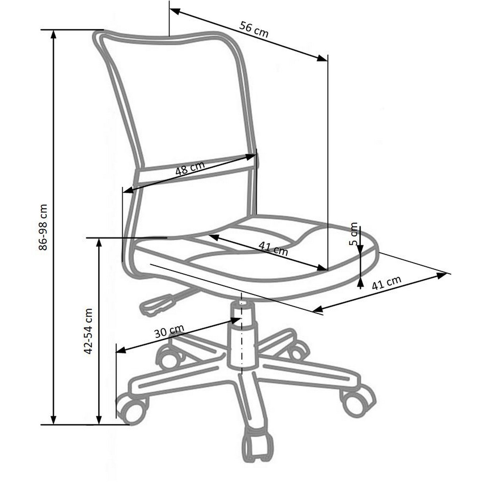 - Înălţime de la sol la sezut: 43 - 55 cm