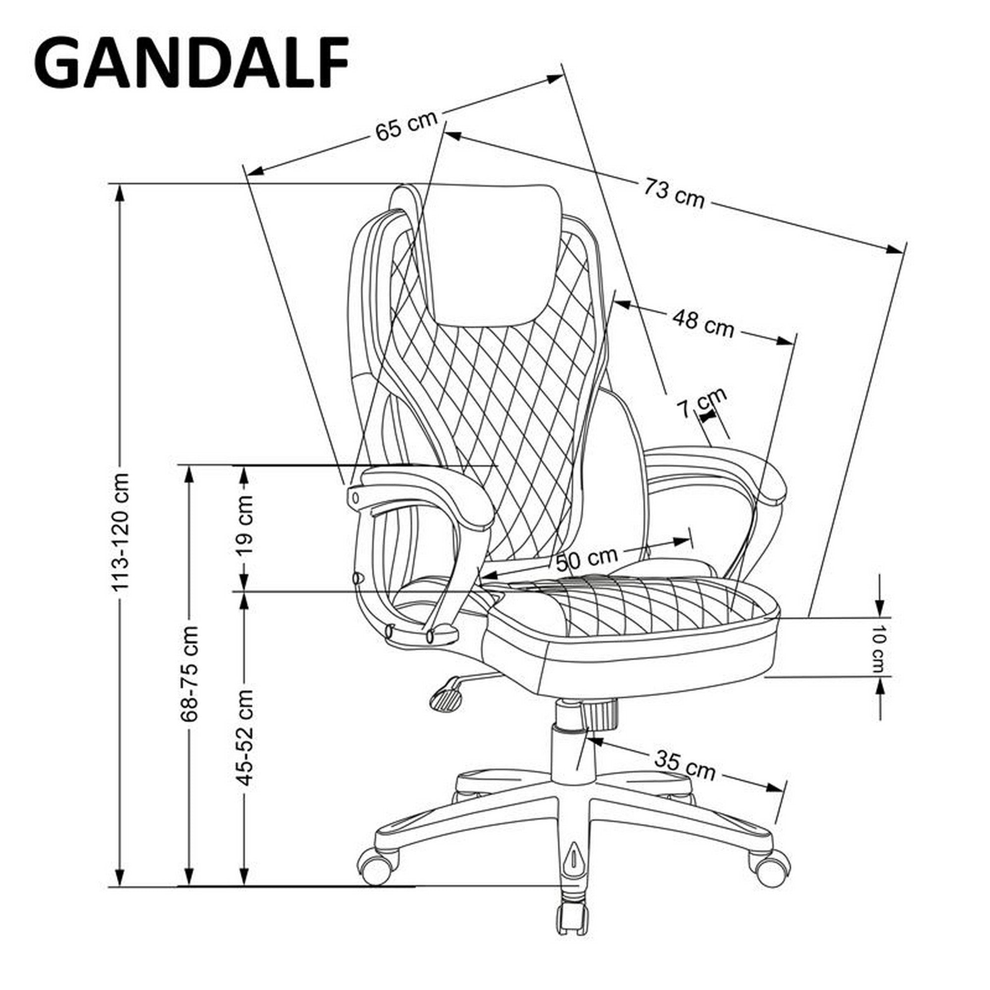 Scaun birou GANDALF, gri/negru, piele ecologica, 65x73x113 cm