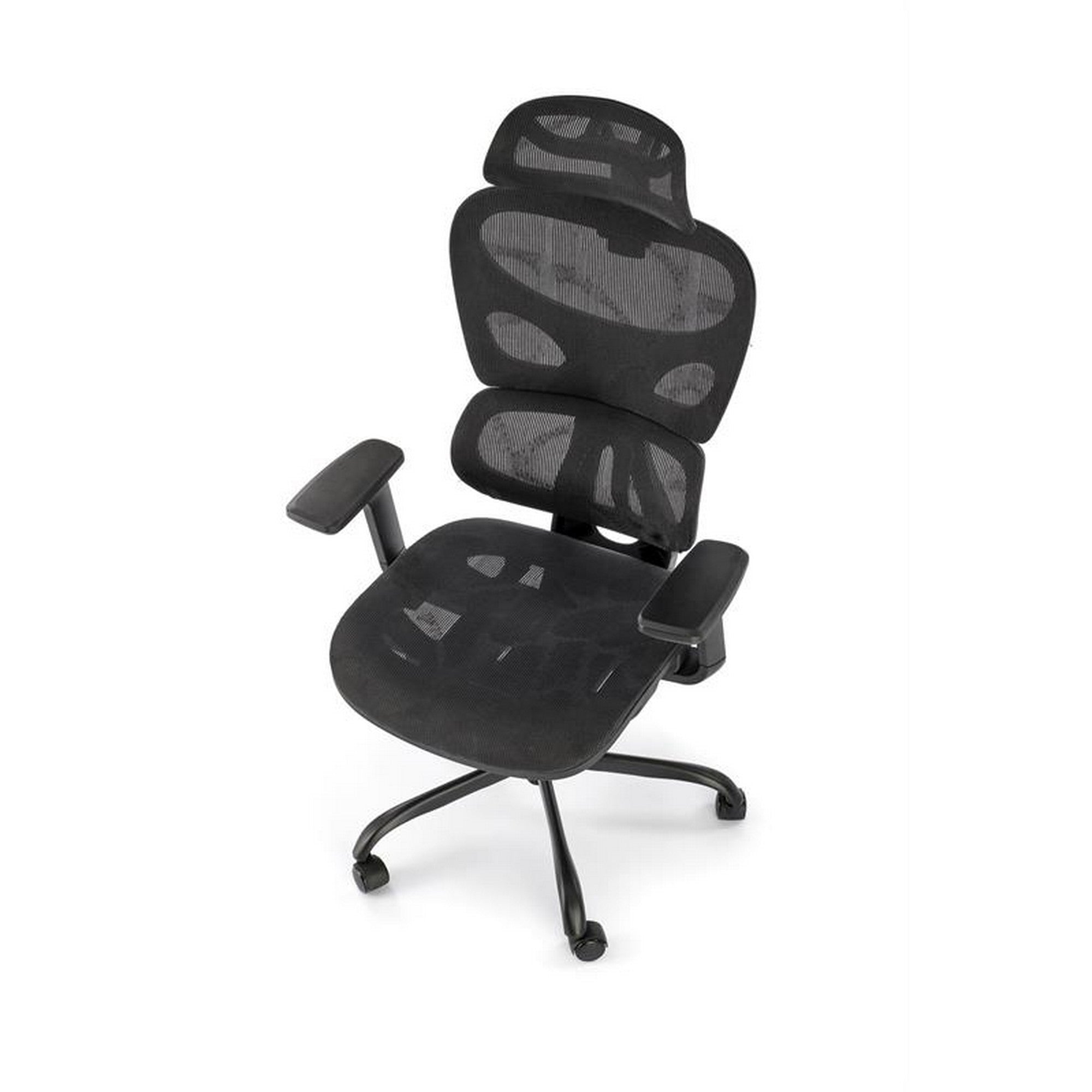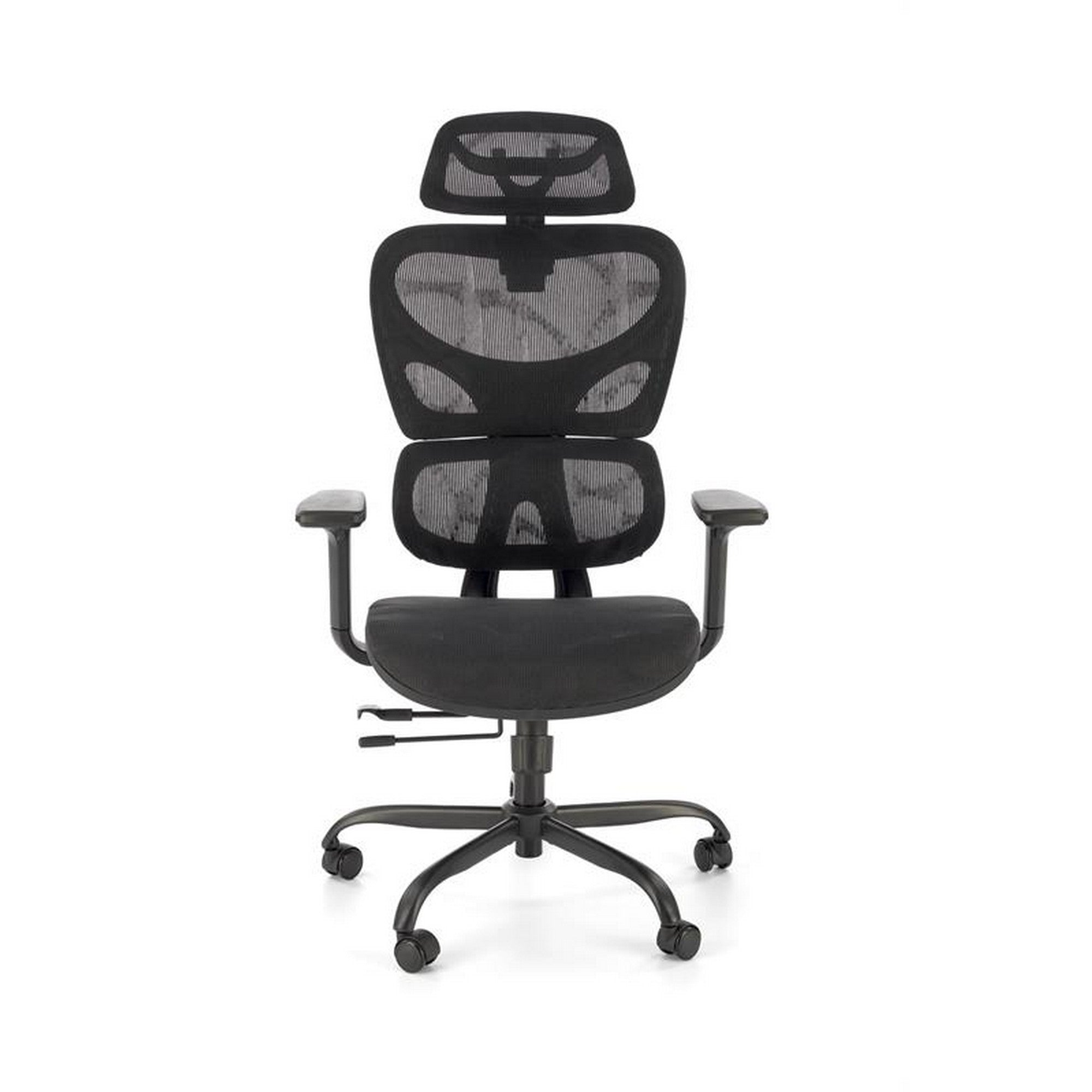 Scaun birou GOTARD, negru, stofa clasica, tetiera/cotiere reglabile, 71x75x114 cm