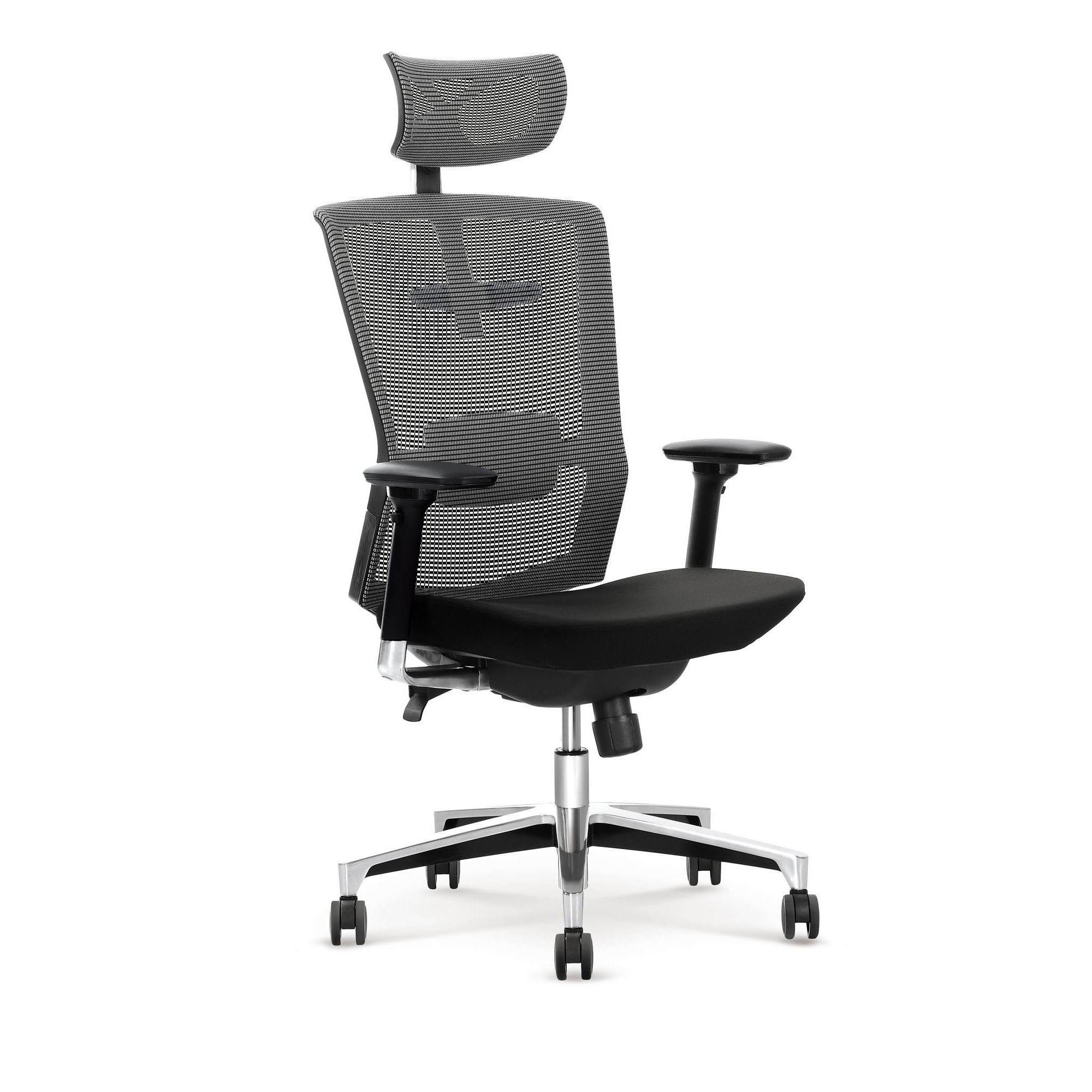 Scaun de birou Ambasador, negru/gri, tetiera si brate reglabile, functie multiblock, 63X64X120/130 CM