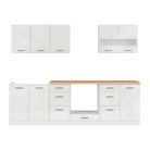 Set bucatarie JUNONA LINE, alb lucios, PAL, 260 cm, cu blat stejar artisan