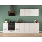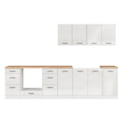 Set bucatarie JUNONA LINE, alb lucios, PAL, 300 cm, cu blat stejar artisan