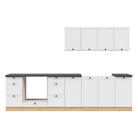 Set bucatarie JUNONA LINE, alb/stejar, PAL, 300 cm, cu blat negru