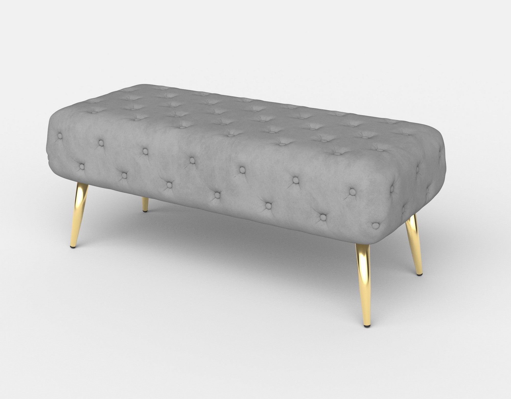 Banca Athena, gri/auriu, stofa catifelata, 100x45x40 cm