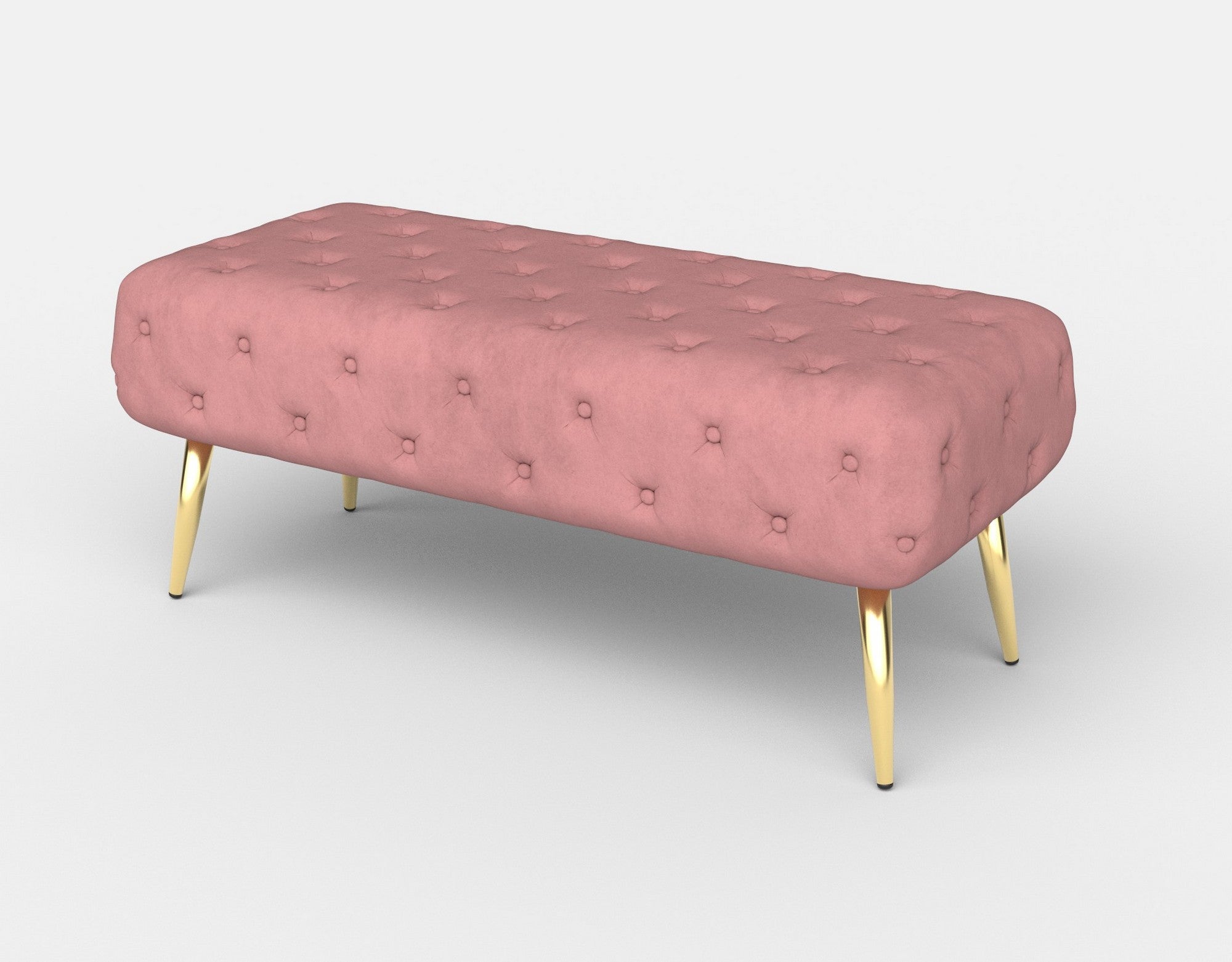 Banca ATHENA, roz/auriu, stofa catifelata, 100x45x40 cm