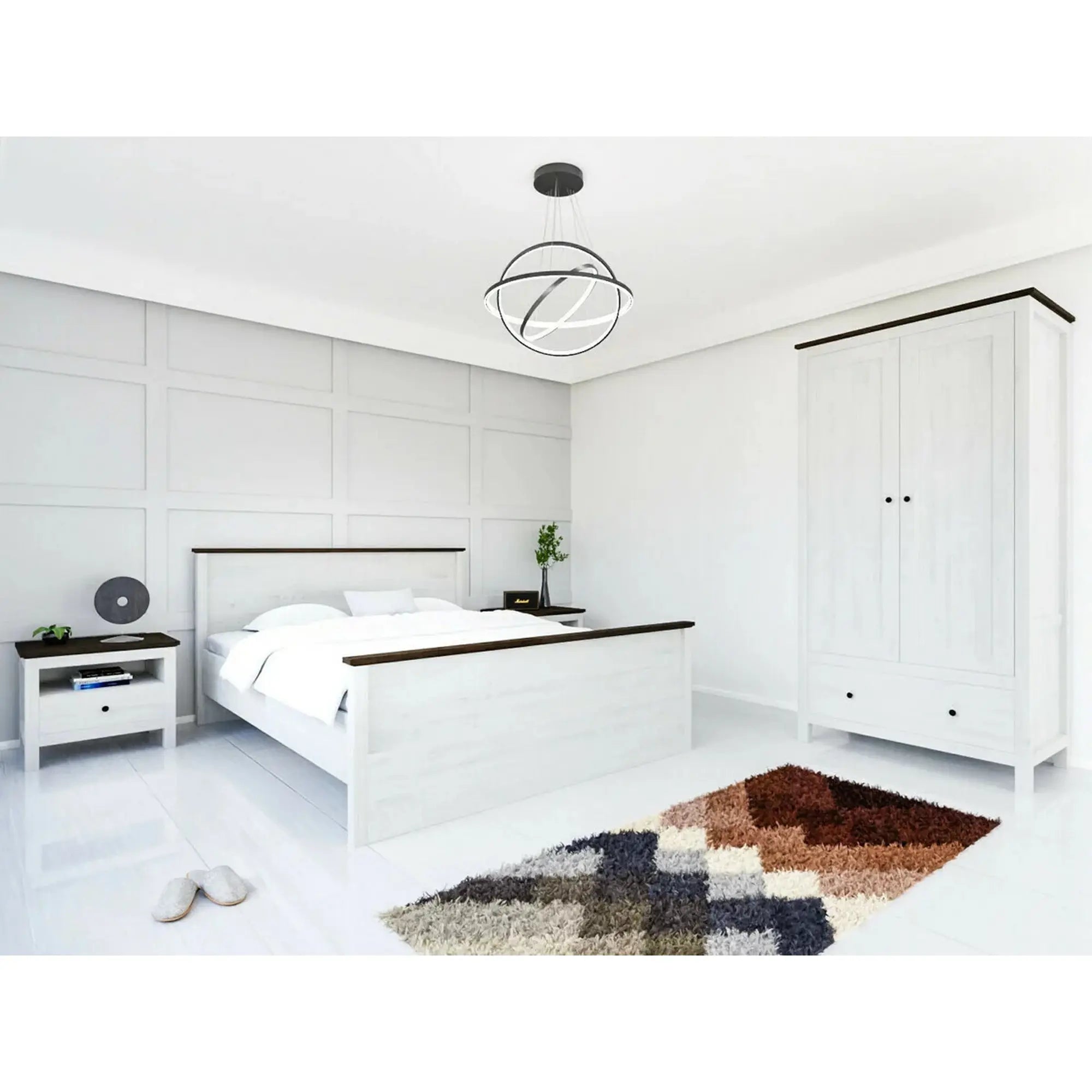 Cadru pat HESEN 140x200, alb/pin larico, PAL